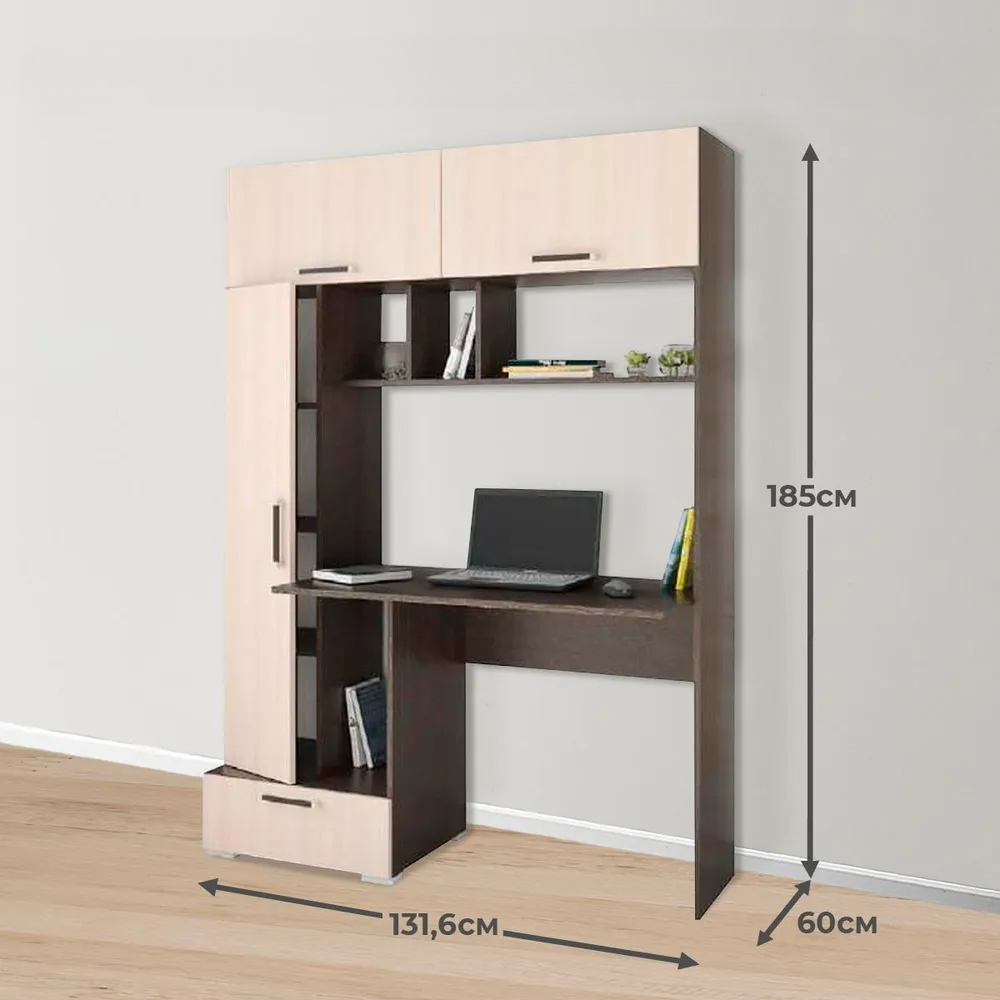 Компьютерный стол Квартет 11 многофункциональный венге/дуб молочный 1850х1316х600 (ВхШхГ)