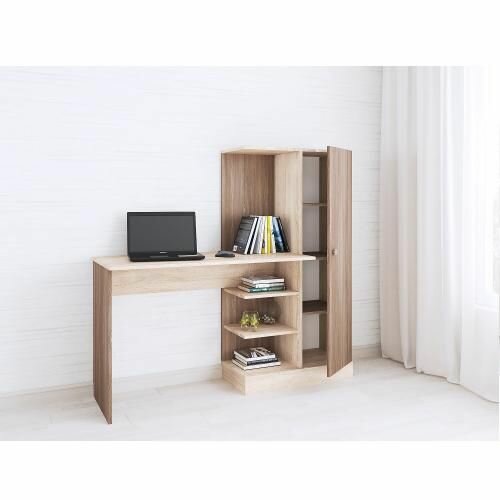 Компьютерный стол Квартет-6 Дуб Сонома/Ясень Шимо ЛДСП с полками, для спальни, гостиной, детской, кабинета 1350х1450х500 тэкс