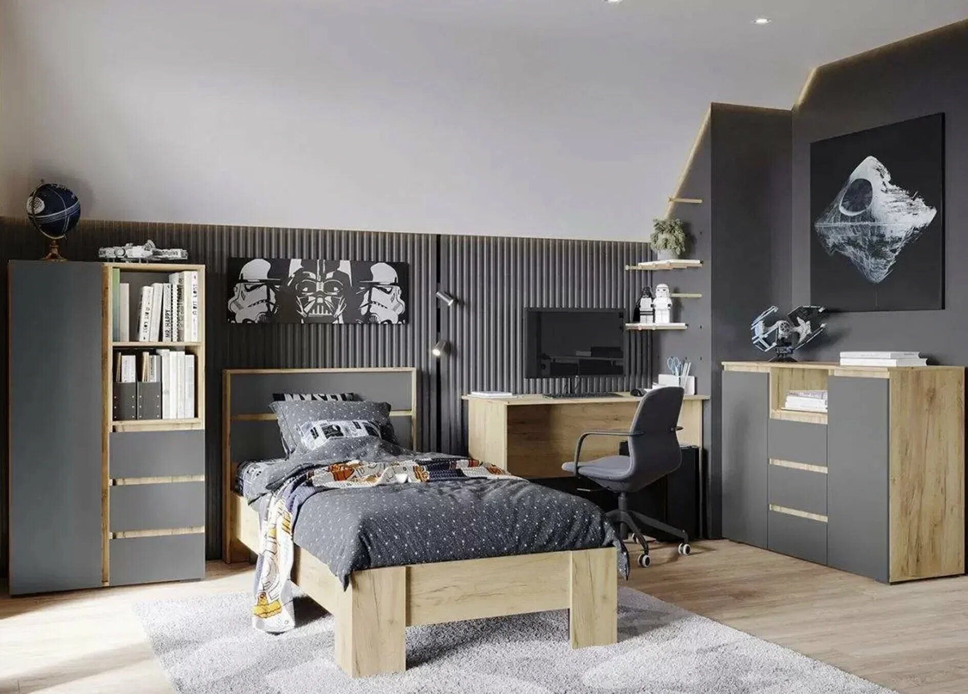 Компьютерный стол для школьника с ящиками Хелен ПС 02 (1420х730х500) графит/дуб крафт золото