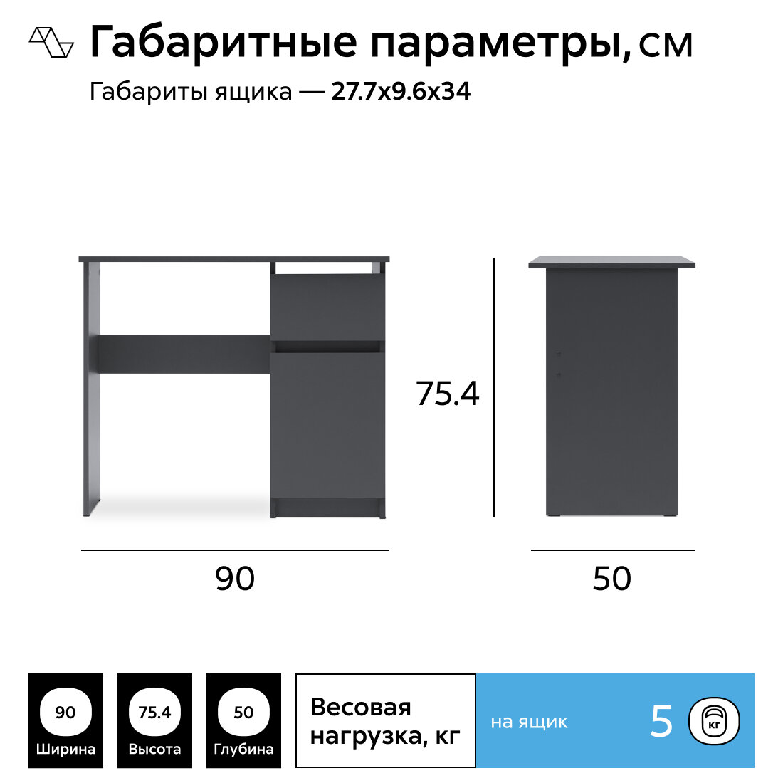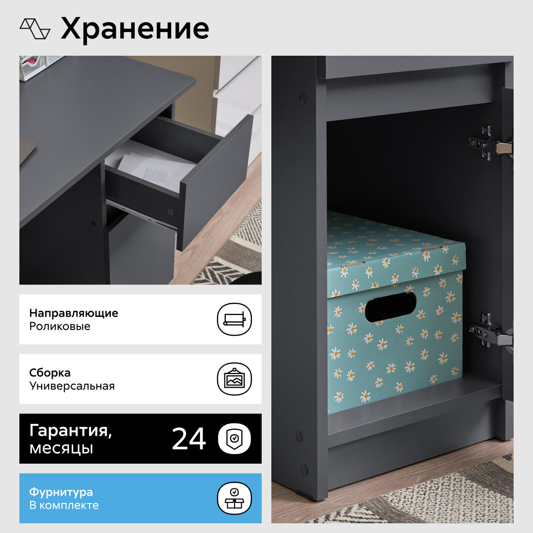 Стол письменный с тумбой Нонтон Эккервуд, графит серый, 90x50x75.4 см интересное: