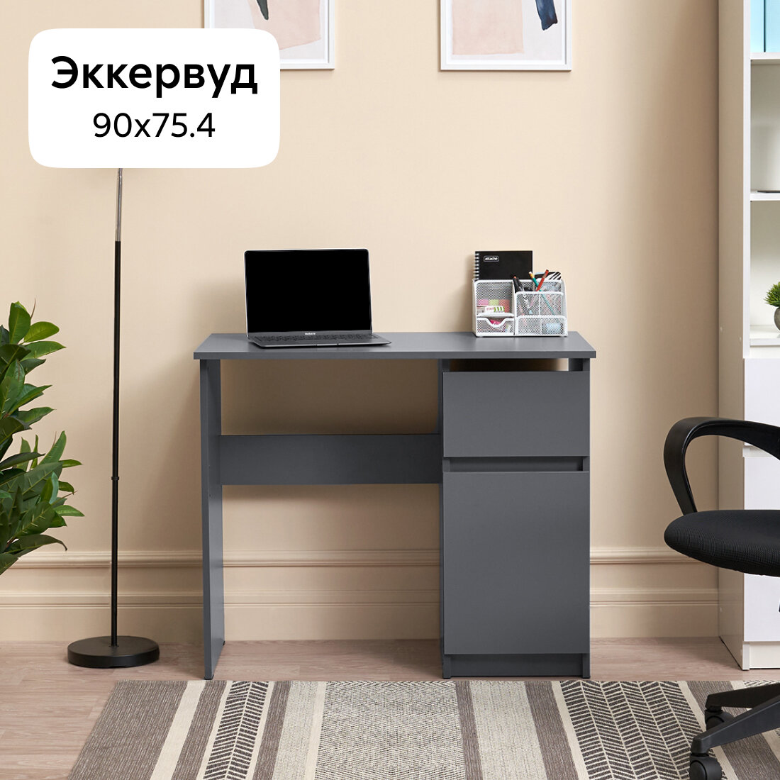 Купить Стол письменный с тумбой Нонтон Эккервуд, графит серый, 90x50x75.4 см