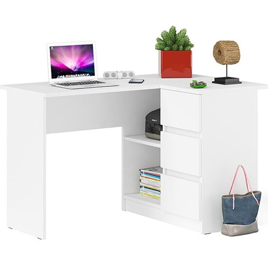 Угловой компьютерный стол Мори МС-16 левый белый, 124,4х84,9х76,6 см, ящики слева, НЕ универсальная сборка