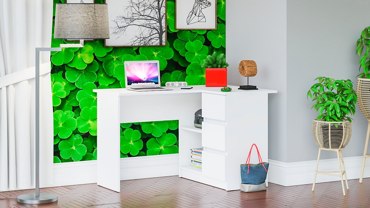 Стол компьютерный три ящика Мори МС-6 левый цвет белый, ШхГхВ 90х50х76,6 см, ящики слева, НЕ универсальная сборка