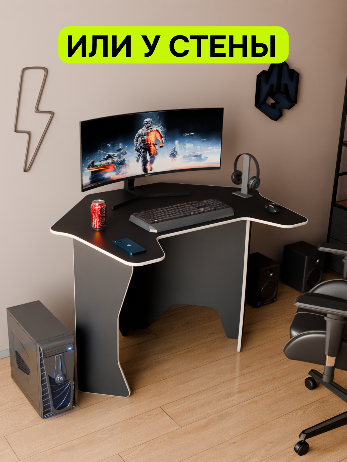 СохранитьУгловой игровой компьютерный стол для геймера черный с белым кантом интересное: