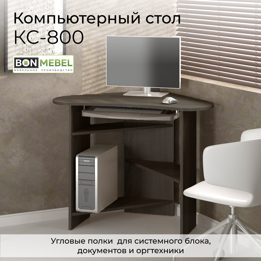 Стол компьютерный БонМебель КС-800 угловой, венге цаво + полочка Д/клав, 80х80х75 см