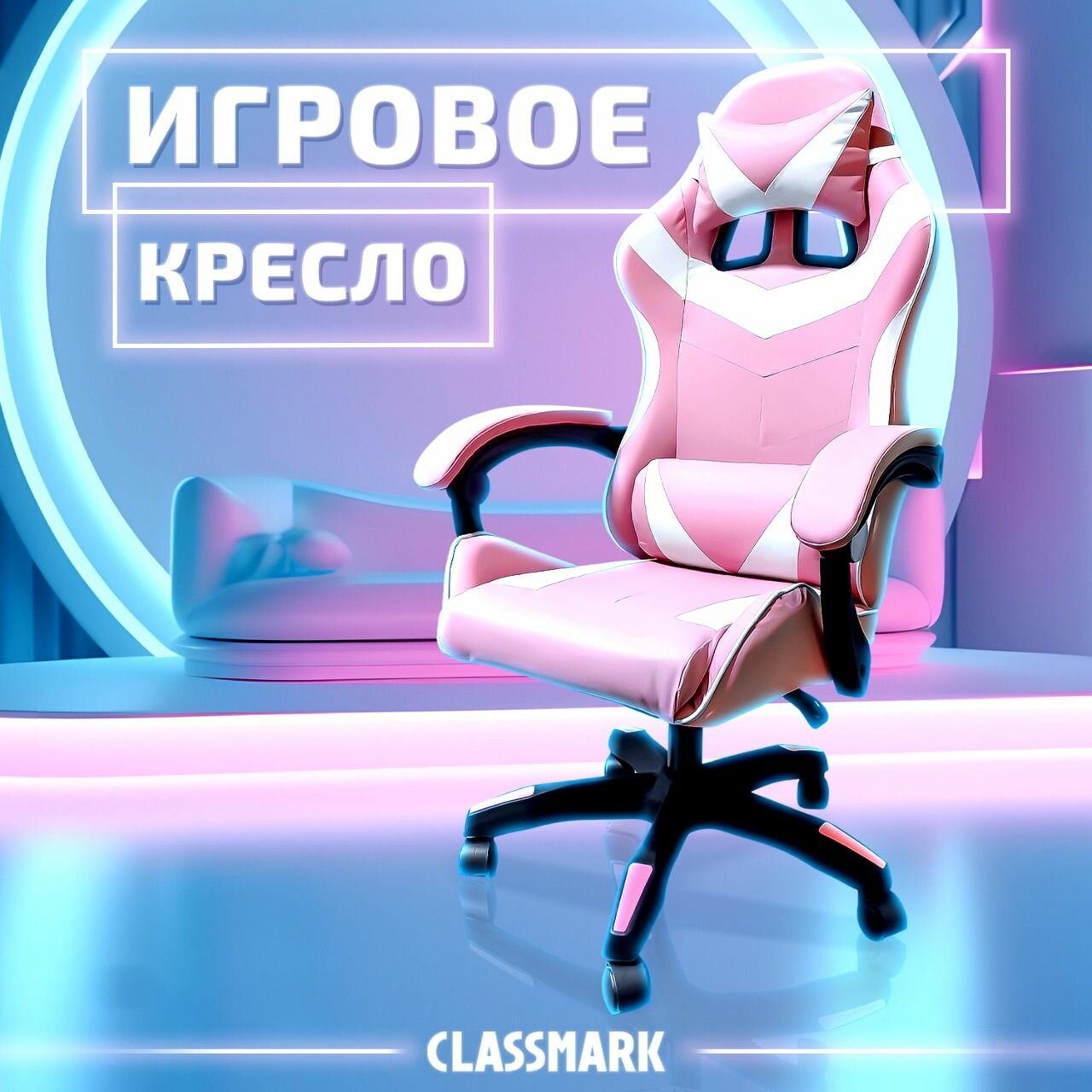 Кресло компьютерное игровое геймерское Classmark FT-1502 офисное с подушками для спины и шеи на колесиках, бело-розовое
