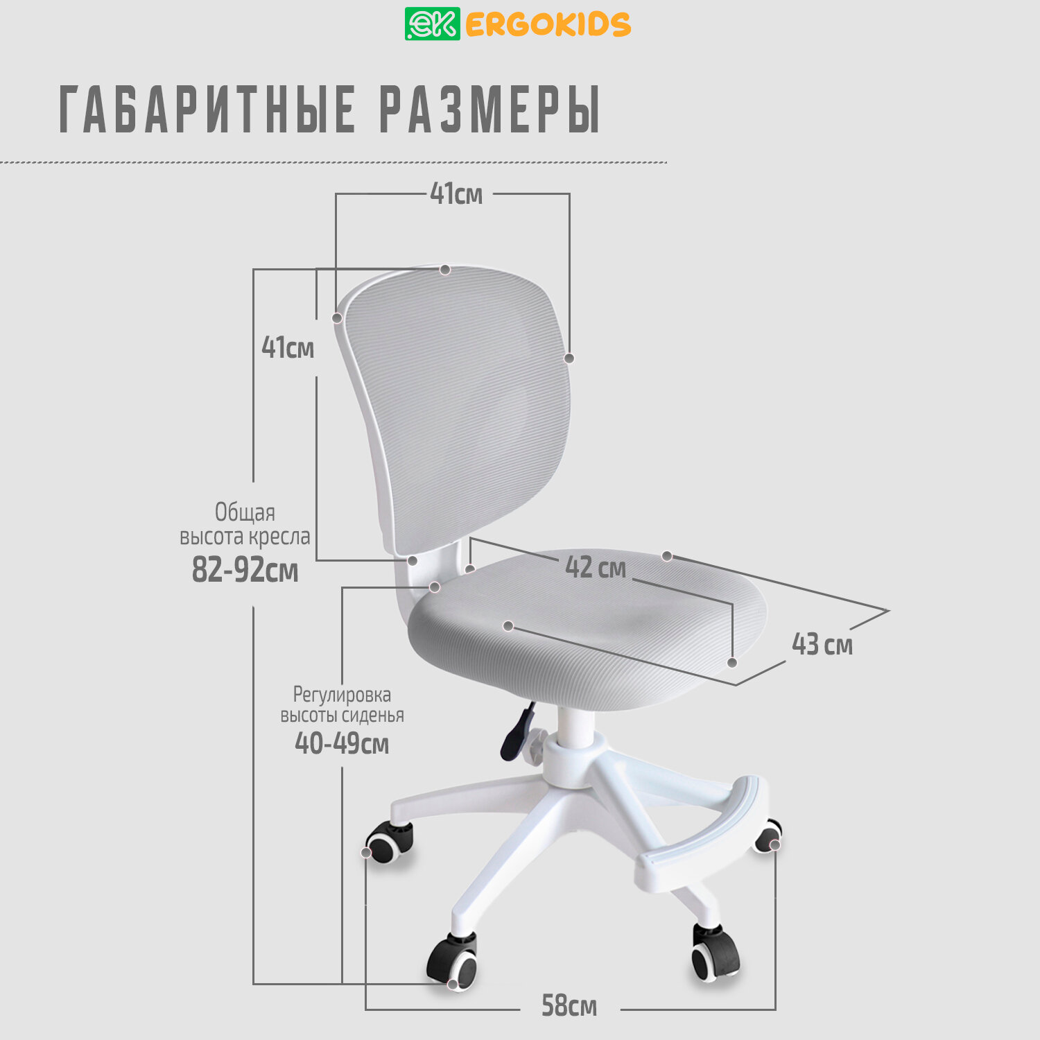 Растущее детское кресло для школьника ErgoKids Soft Air Lite Grey (арт.Y-240 Lite G) для обычных и растущих парт