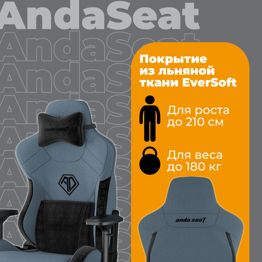 Игровое компьютерное кресло AndaSeat T-Pro 2, текстиль, голубой/черный интересное: