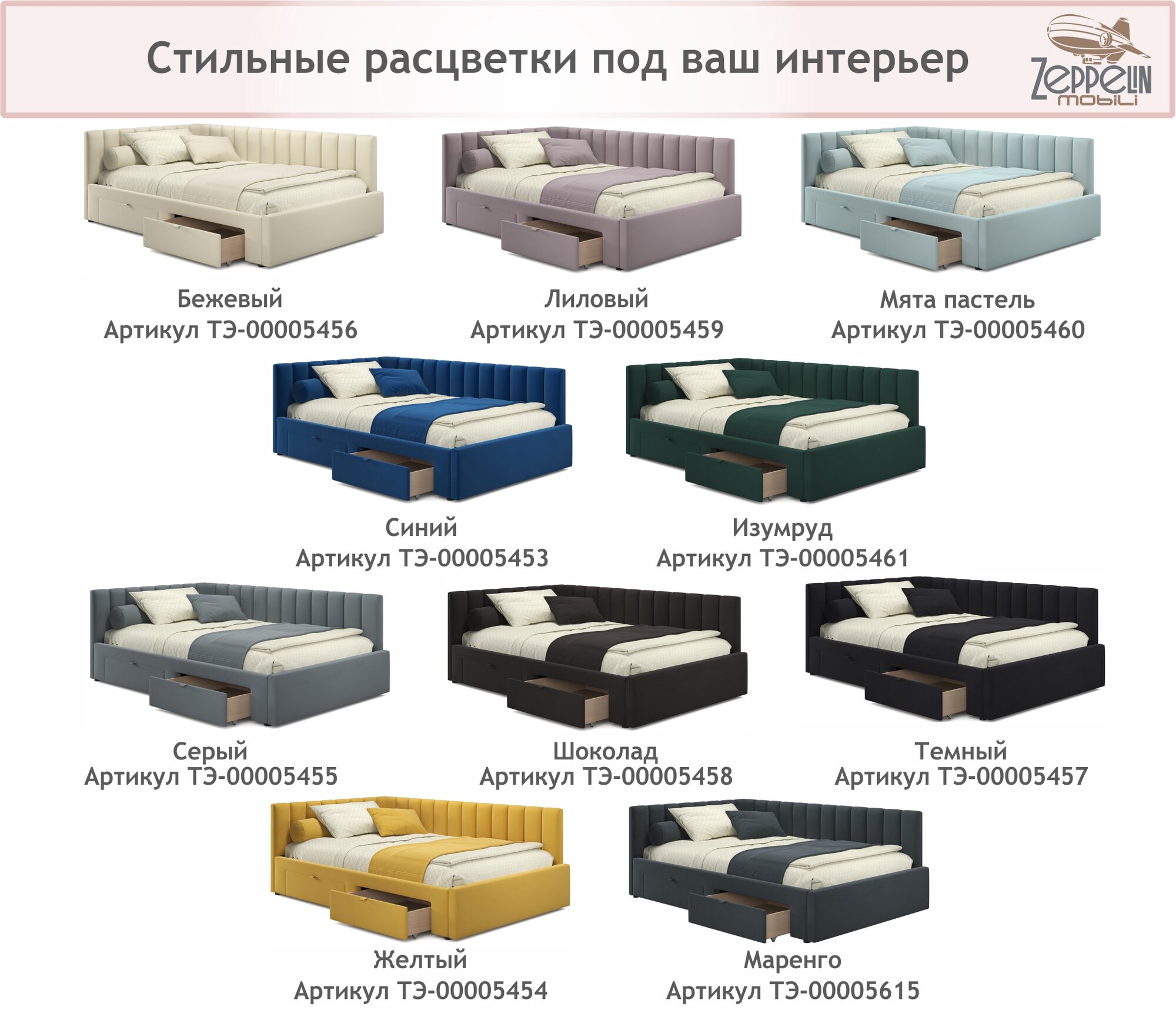 СохранитьКровать угловая Milena Zeppelin 120х200 маренго с ящиками, из велюра, с ортопедическими ламелями интересное: