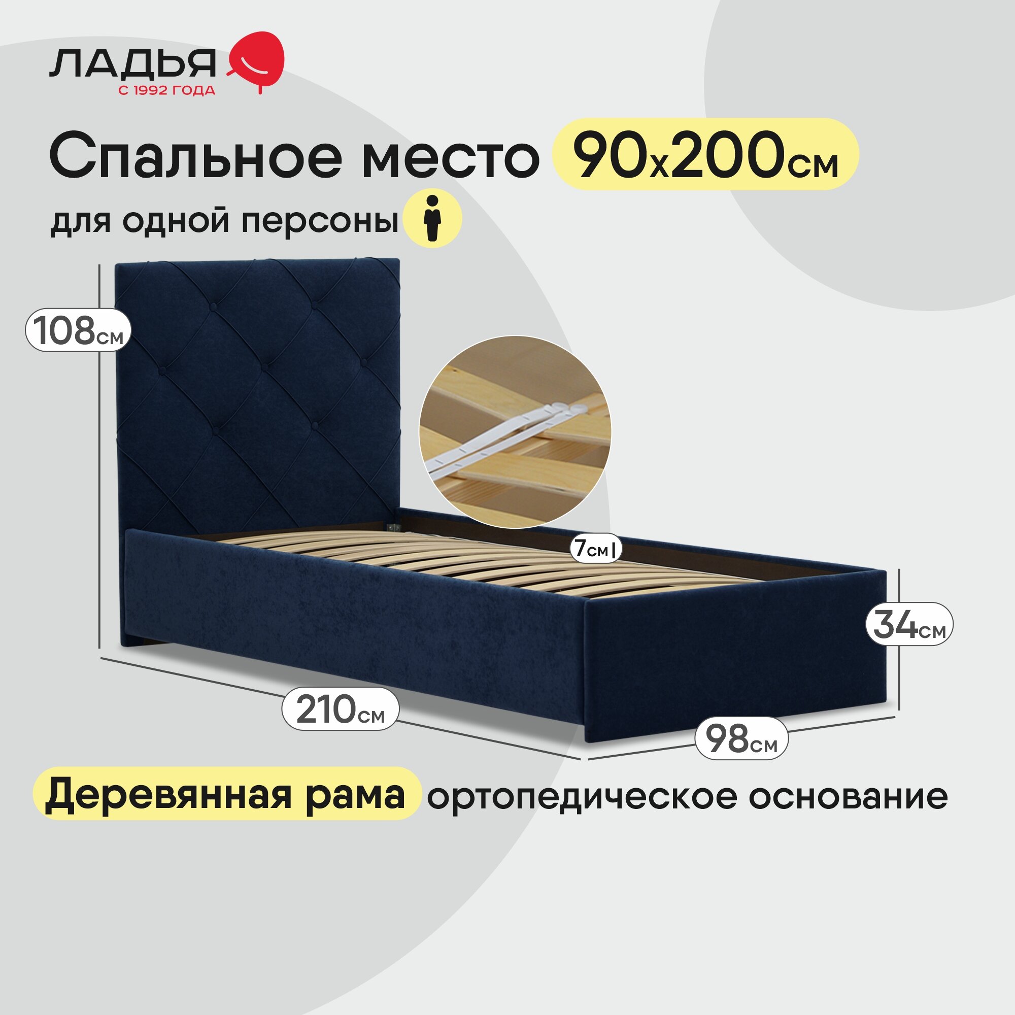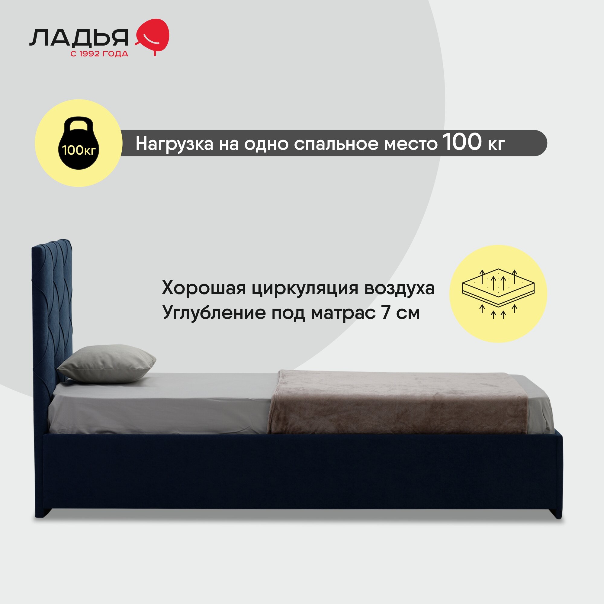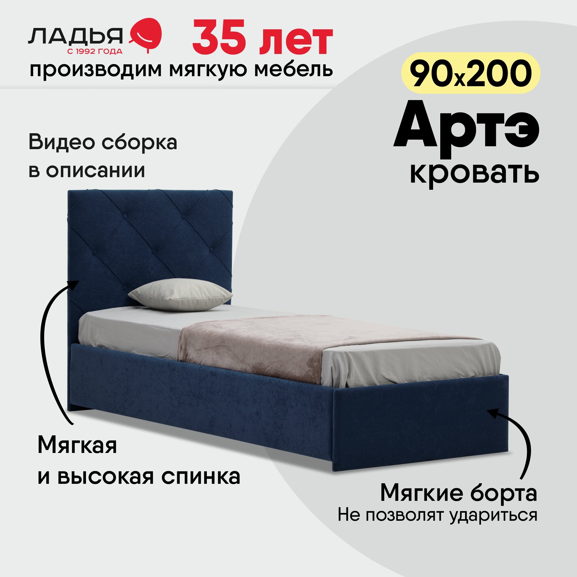 СохранитьОдноспальная кровать Артэ 90х200, с мягким изголовьем для дома и спальни, Ладья, ортопедическое основание, Aloba Baltic интересное: