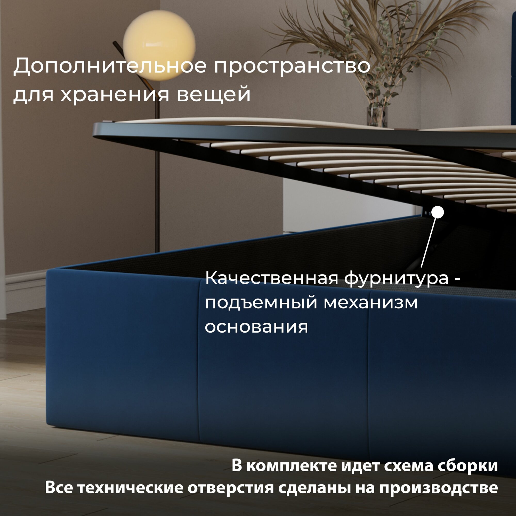 | Особенности | мягкое изголовье, с изножьем, с подъемным механизмом, с ящиком для белья |