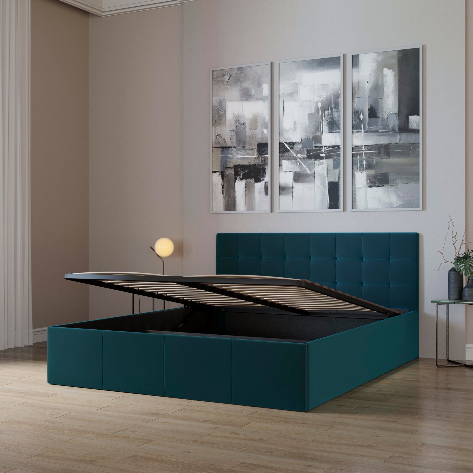Кровать с подъемным механизмом, с мягкой обивкой и заглушиной синяя 160х200 Эмма (Велюр Confetti Blue)