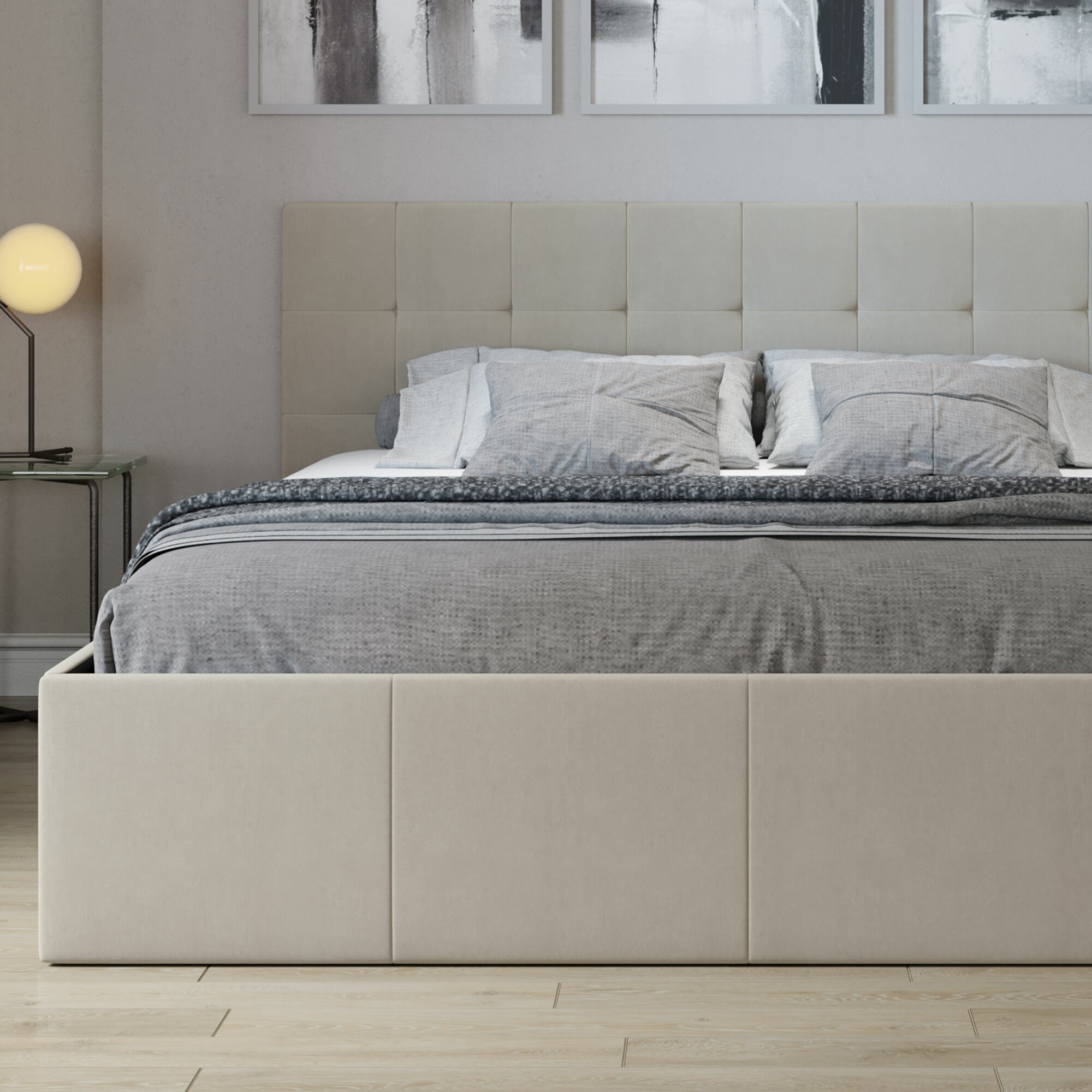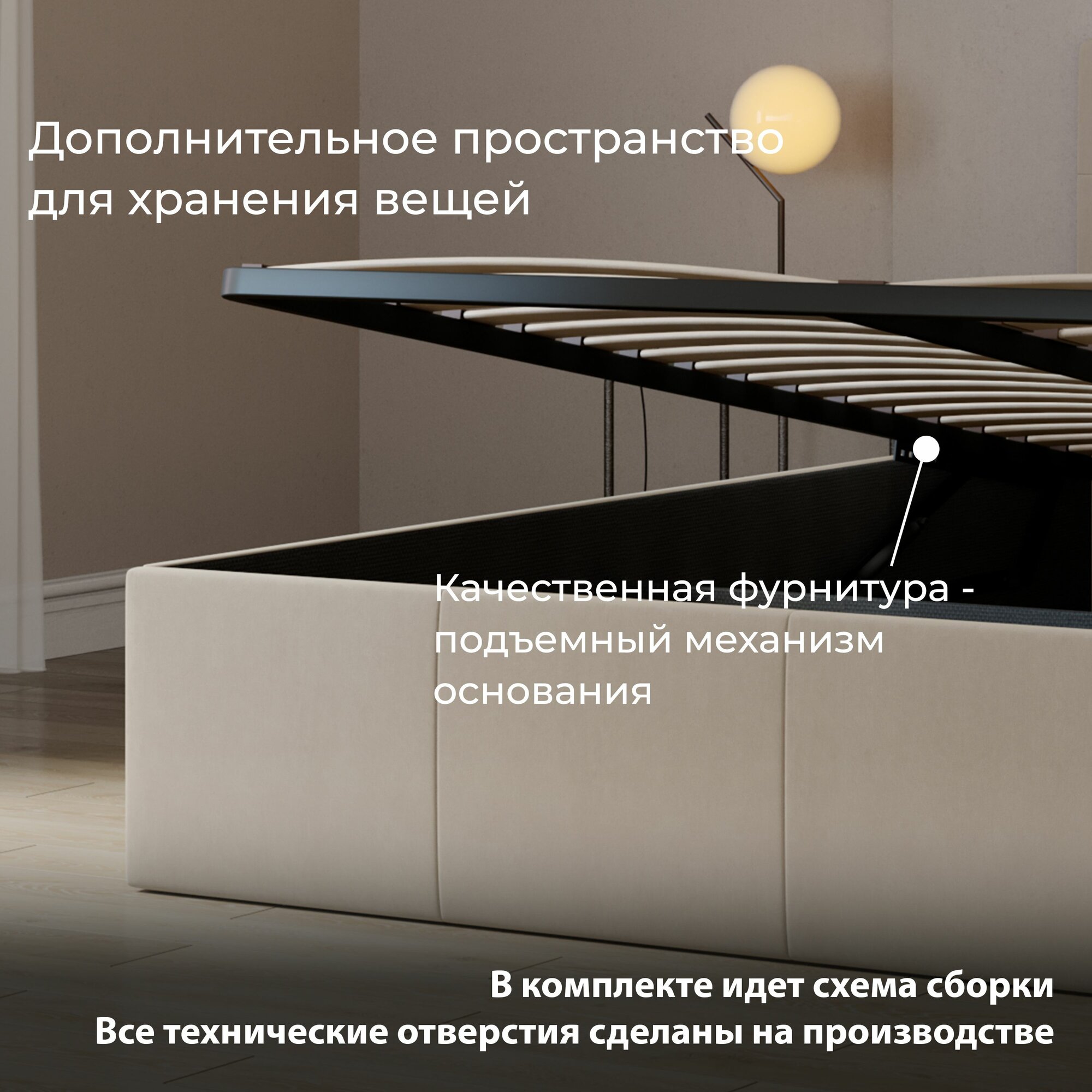 Кровать с подъемным механизмом, с мягкой обивкой и заглушиной бежевая светлая 160х200 Эмма (Велюр Confetti Cream)