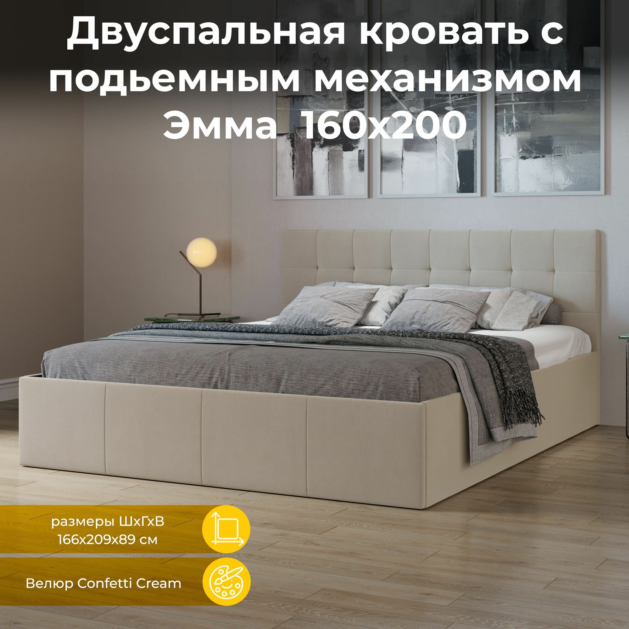 СохранитьКровать двуспальная 160х200 см, с ПМ Эмма (Велюр Confetti Cream) интересное: