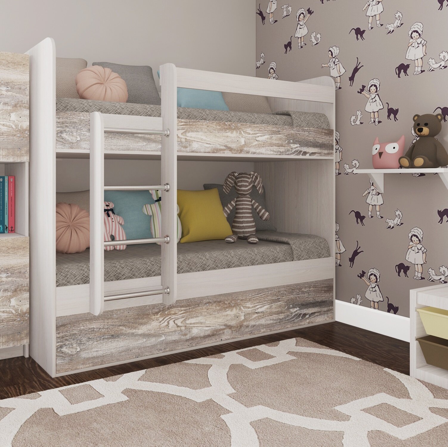 Кровать двухъярусная Есэндвич kids Лаворо 160х70 см (Анкор белый/Бетон пайн экзотик)