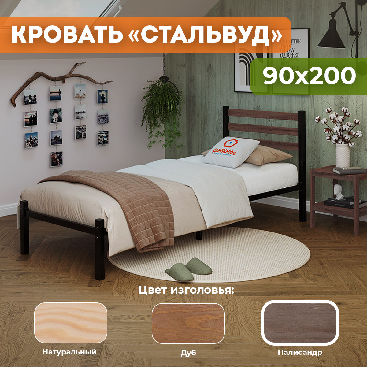 СохранитьКровать металлическая Сталь с деревянными декоративными накладками на изголовье в цвете ПАЛИСАНДР 90х200, черная интересное: