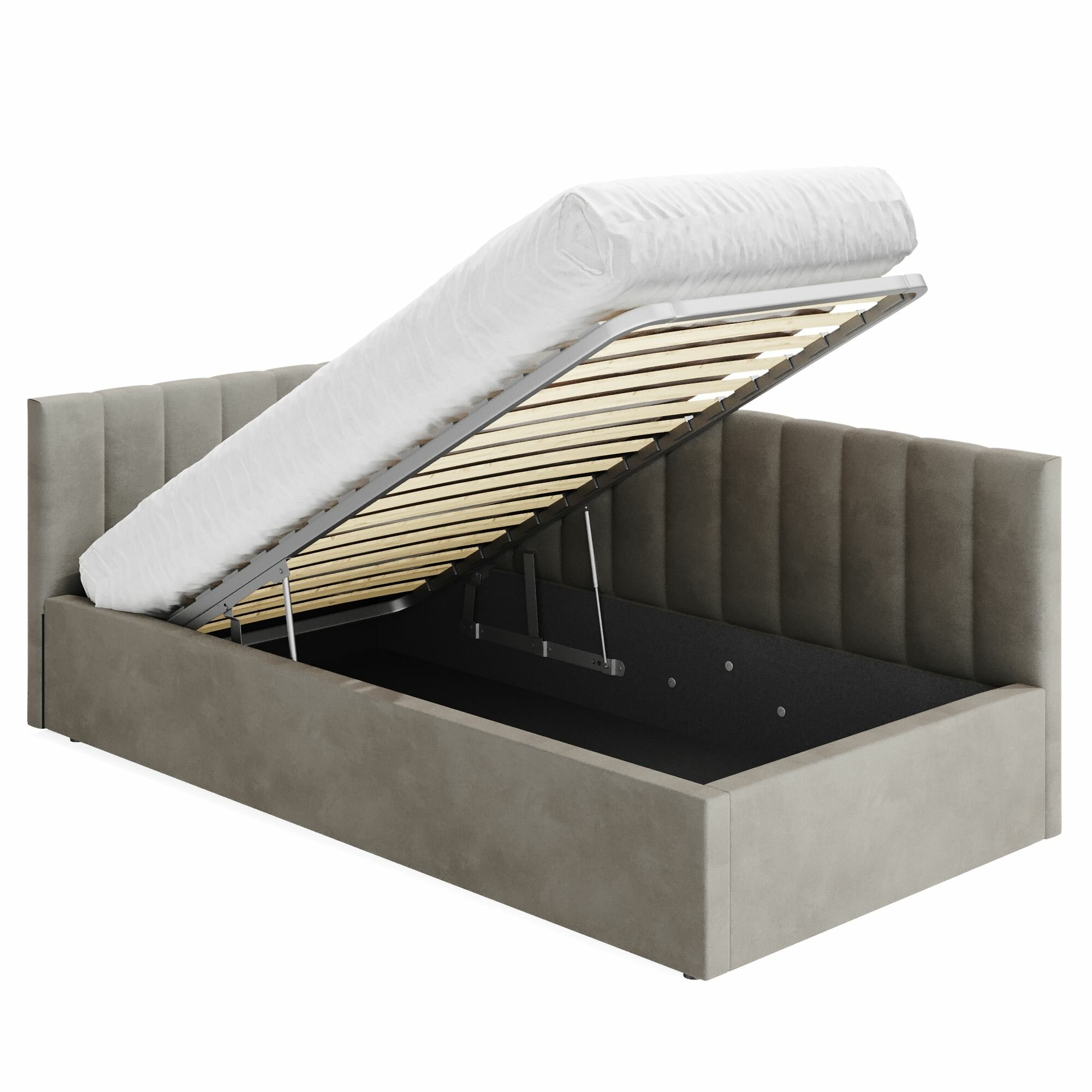 Односпальная угловая кровать 90х200 "Юлия" Бежевый-Велюр