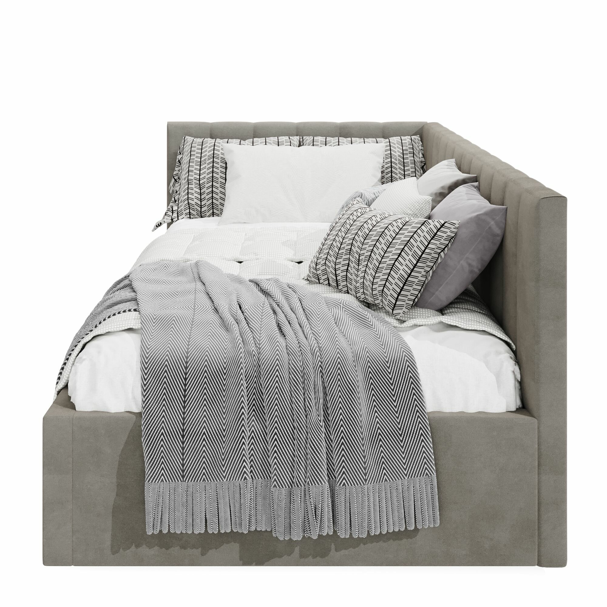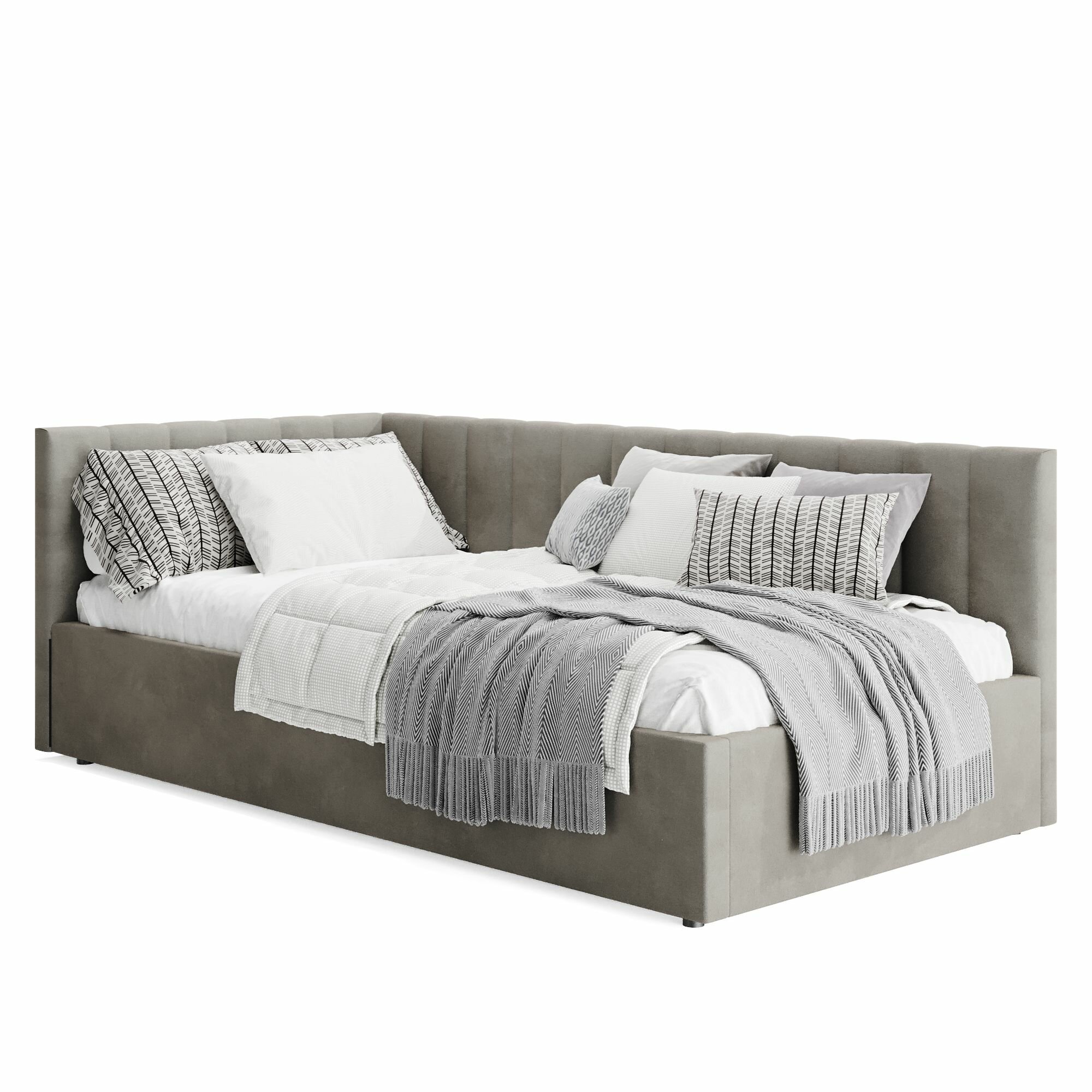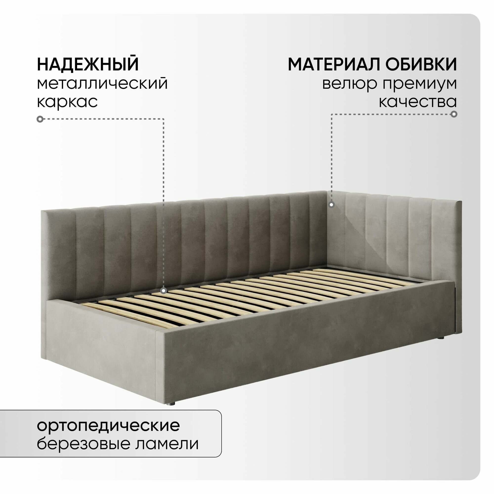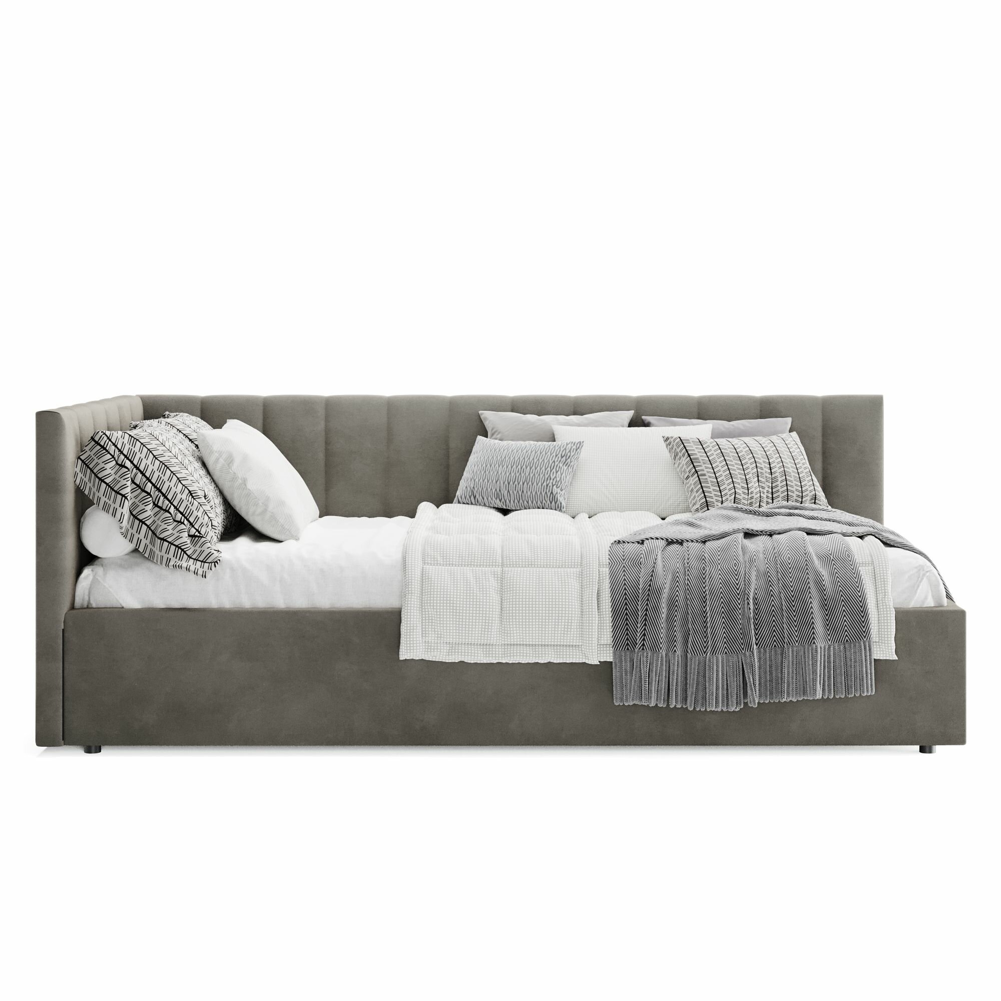 Односпальная угловая кровать 90х200 "Юлия" Темно-Серый-Велюр