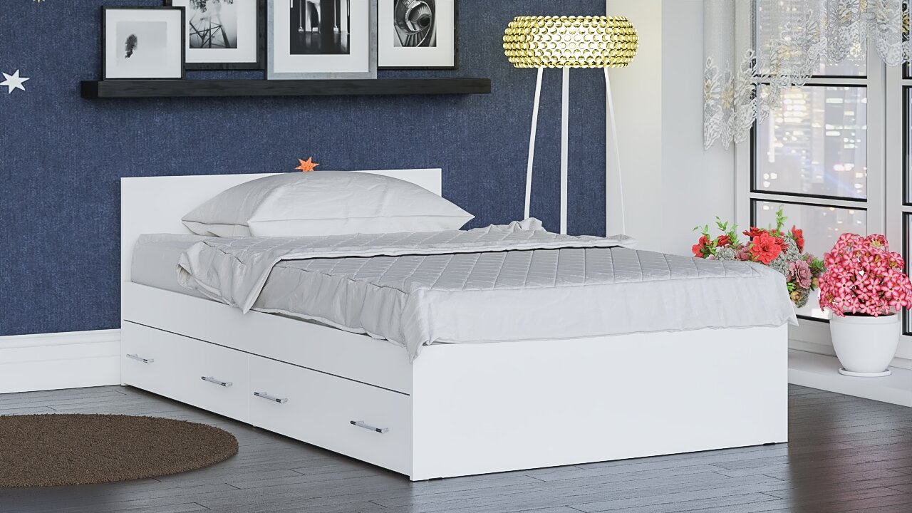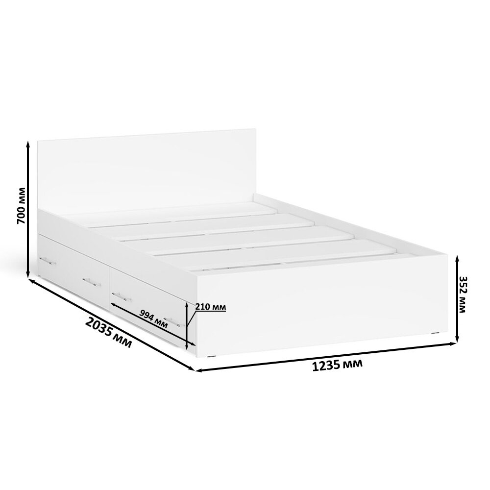 Кровать с ящиками для белья Мори 1200 цвет белый, ШхГхВ 123,5х203,5х70 см, сп.м. 1200х2000 мм, без матраса, основание есть