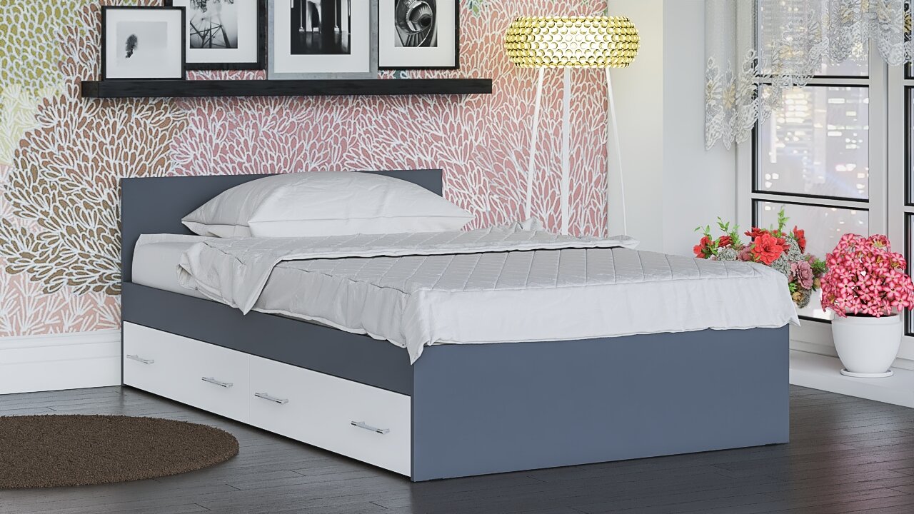 СохранитьКровать с ящиками для белья Мори 1200 цвет графит/белый, ШхГхВ 123,5х203,5х70 см, сп. м. 1200х2000 мм, без матраса, основание есть интересное: