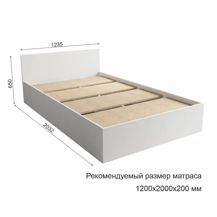 Кровать ДСВ Мебель Мори КРМ 1200.1/1 (МП/3) Белый Размеры: Высота 650мм Глубина 2032мм Ширина 1235мм