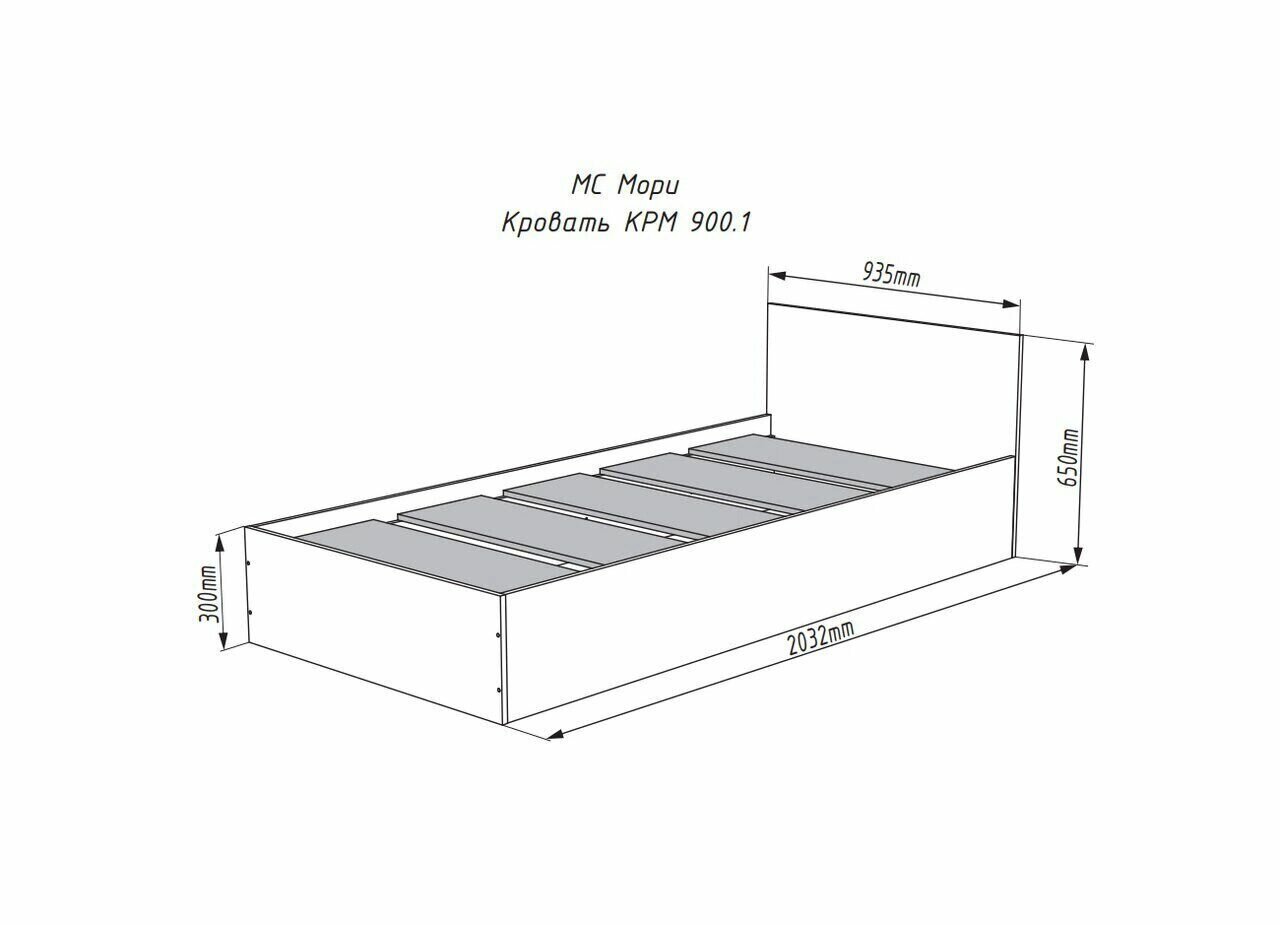 Кровать ДСВ Мебель Мори КРМ 900.1/1 (МП) Графит Размеры: Высота 650мм Глубина 2032мм Ширина 935мм