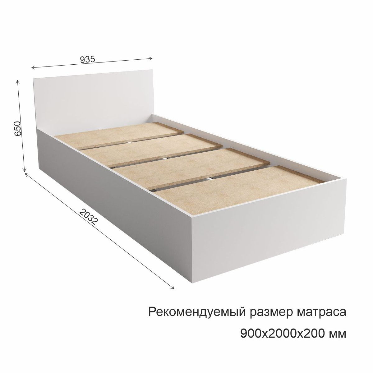Кровать «Мори» 900×2000 мм, белый