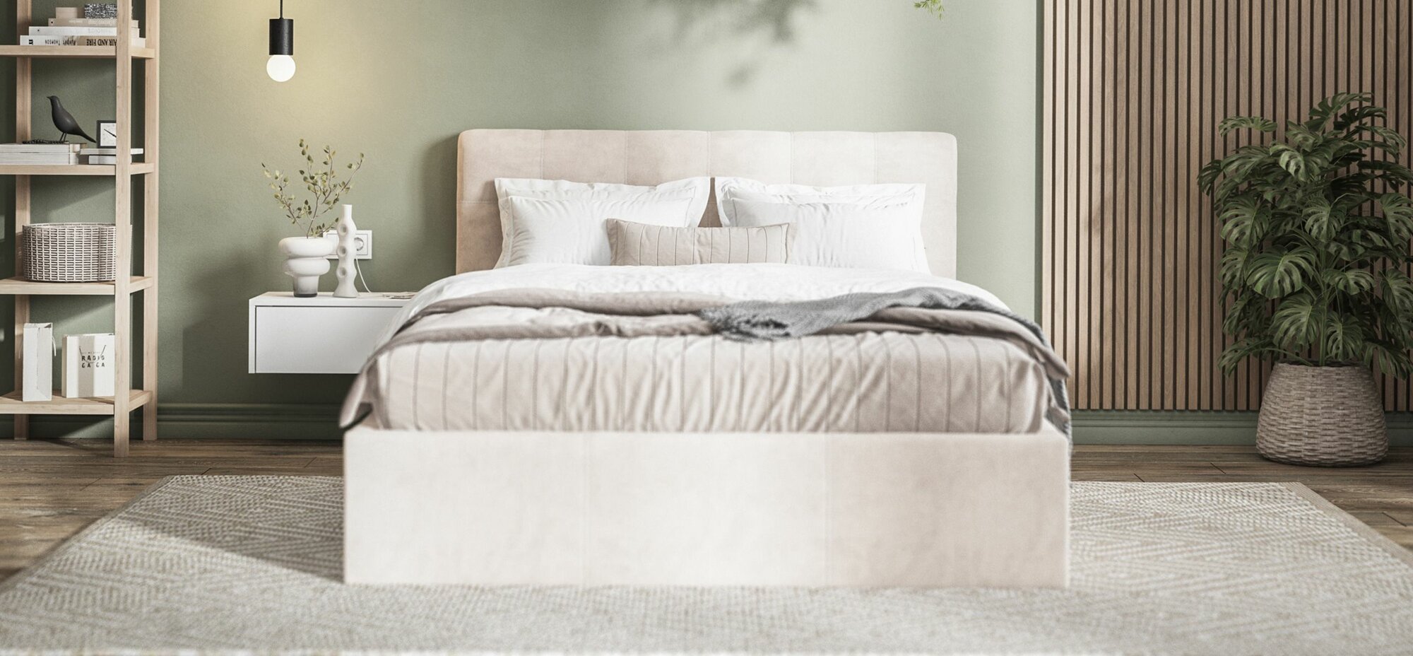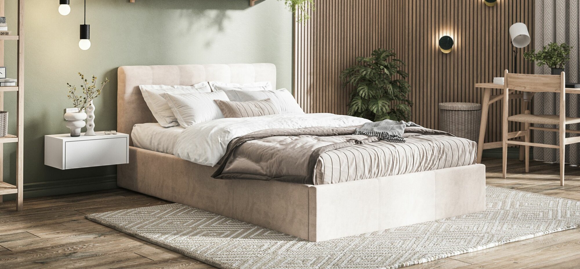 Купить Двуспальная кровать Белла, с подъемным механизмом, велюр Monolit латте, 140х200 см