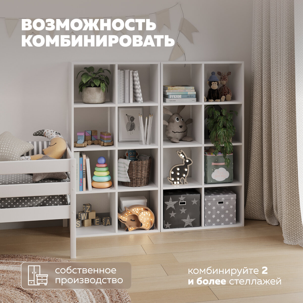 Стеллаж деревянный напольный ЛДСП; 125см x 95см x 29см; 12 ячеек; цвет белый