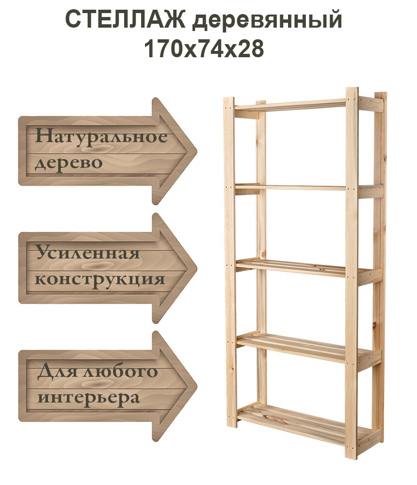 Купить Стеллаж "Елки палки" деревянный, 170х74х28 см, 5 полок, сосна