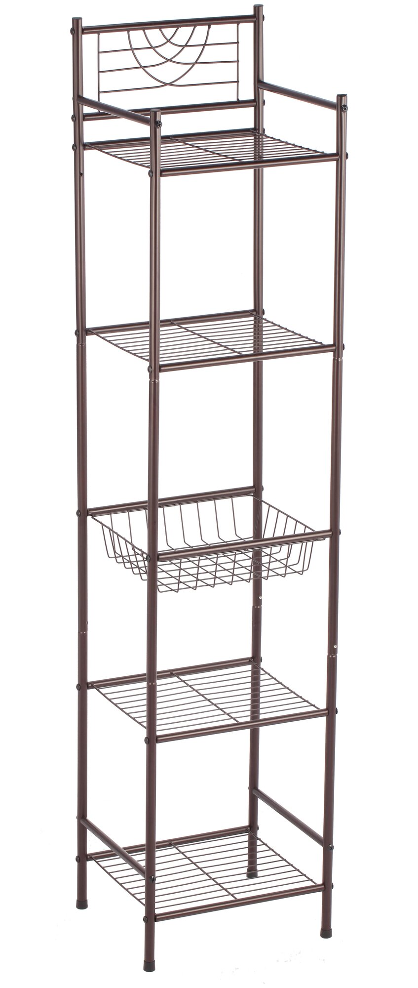 Купить Стеллаж UniStor Verona, металл, 3 полки, с корзинкой, коричневый, 33 см x 29,5 см x 148,5 см