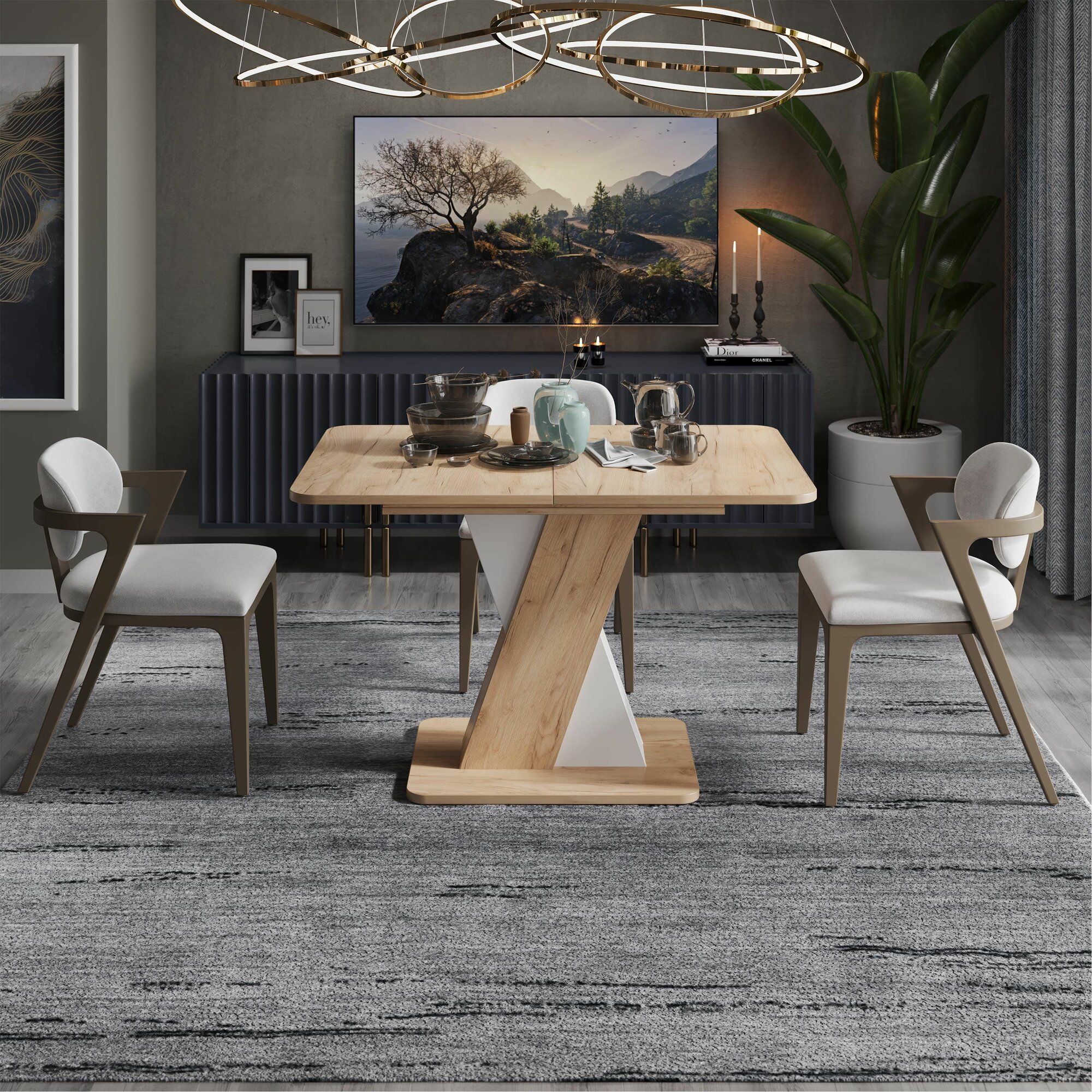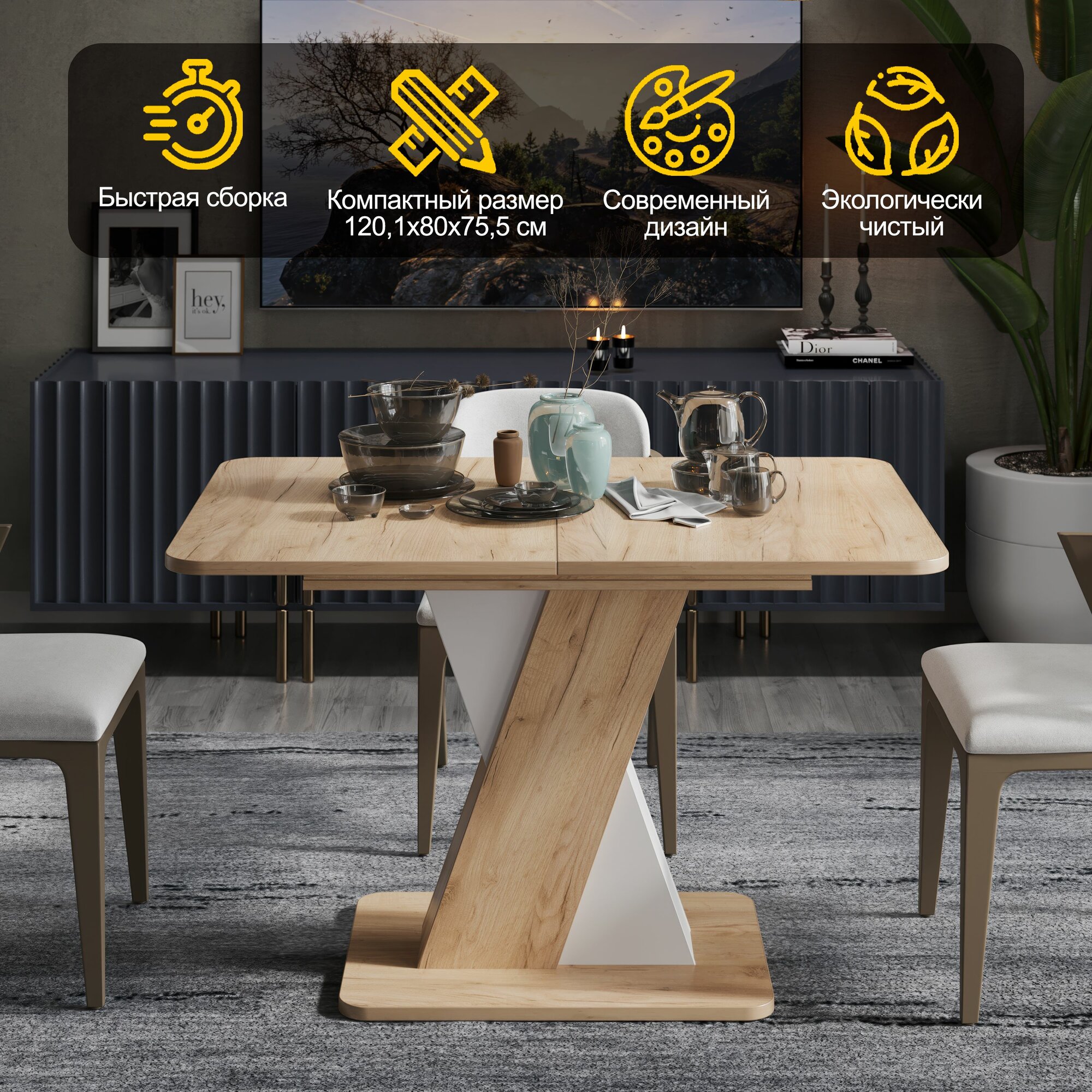 Стол обеденный раздвижной, кухонный стол белый бежевый дуб (ВхДхГ) 75х120х80 см, Люксембург