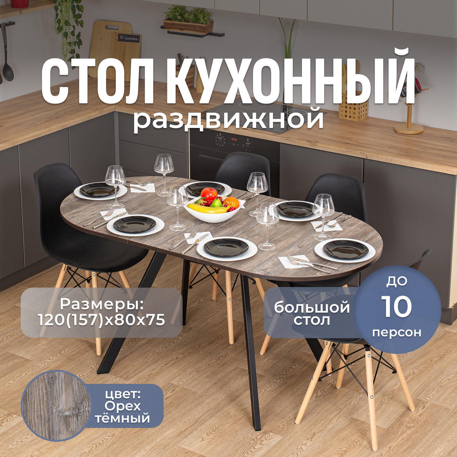 Купить Стол кухонный овальный раздвижной Вальс О-1 ОТ 95 ЧР 120х80, раскладной, серо-коричневый