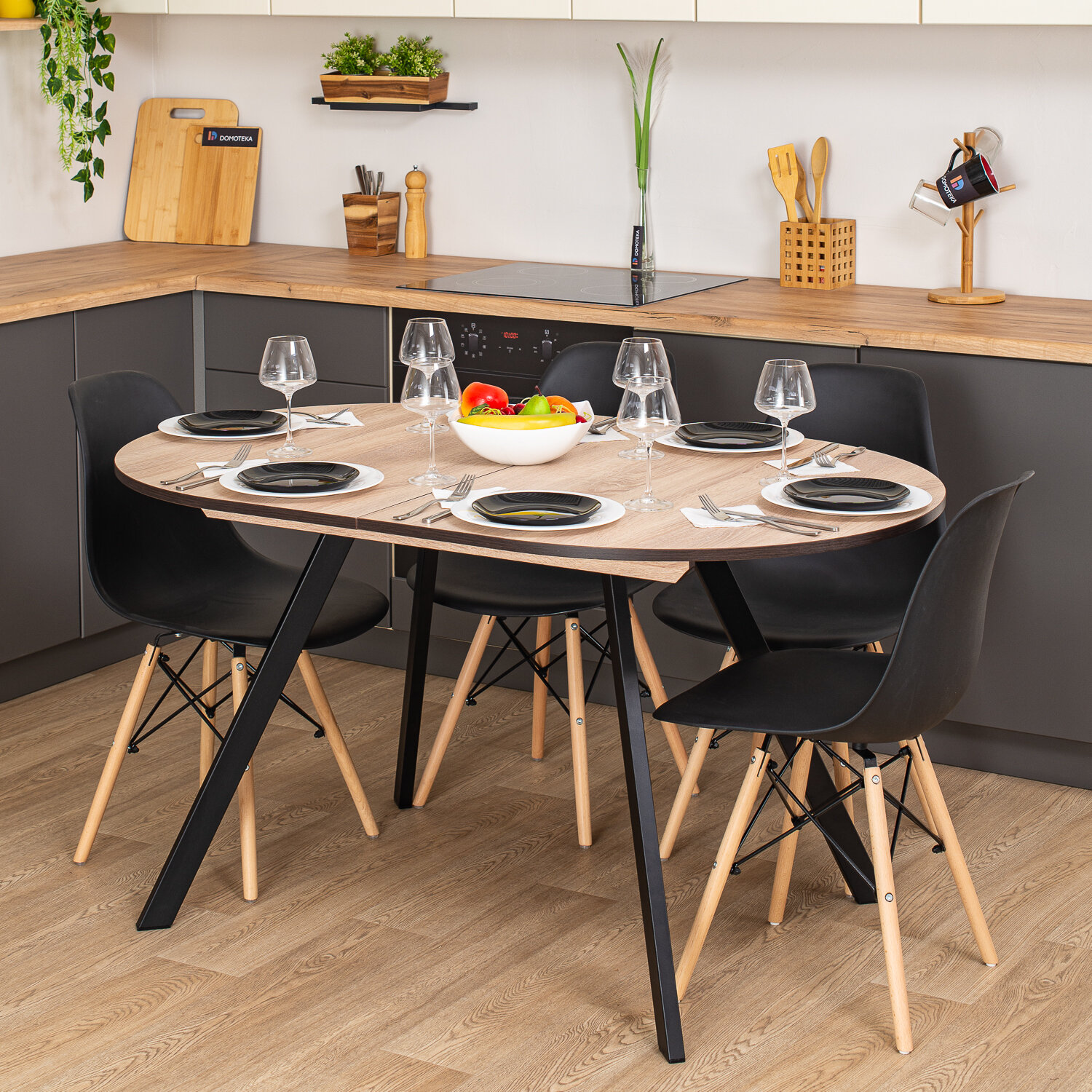 Стол кухонный овальный раздвижной Вальс О-1 Бел 95 ЧР 120х80, раскладной, белый, черный