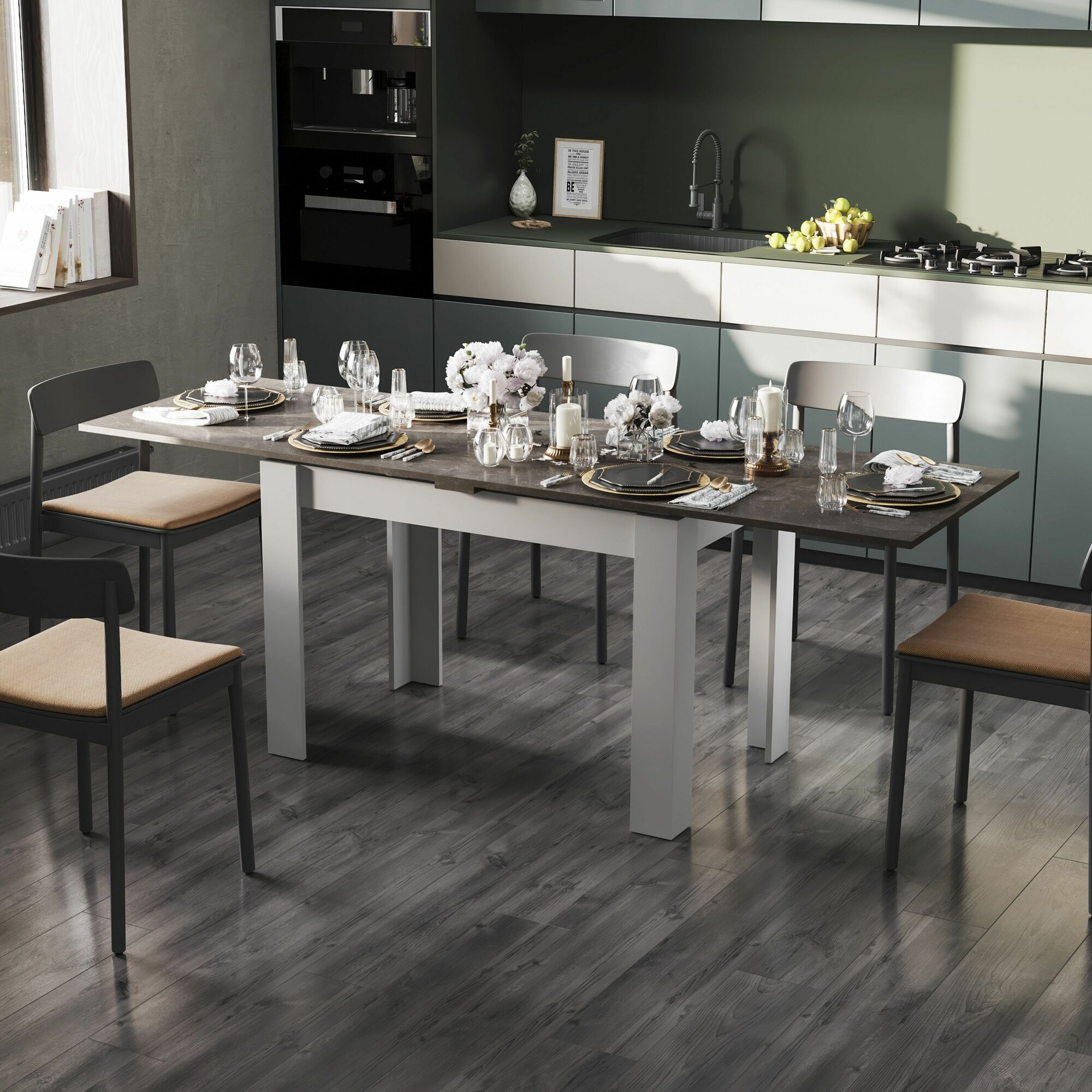 Купить Стол кухонный , раздвижной , Промо тип 4 (Белый/Ателье темный)