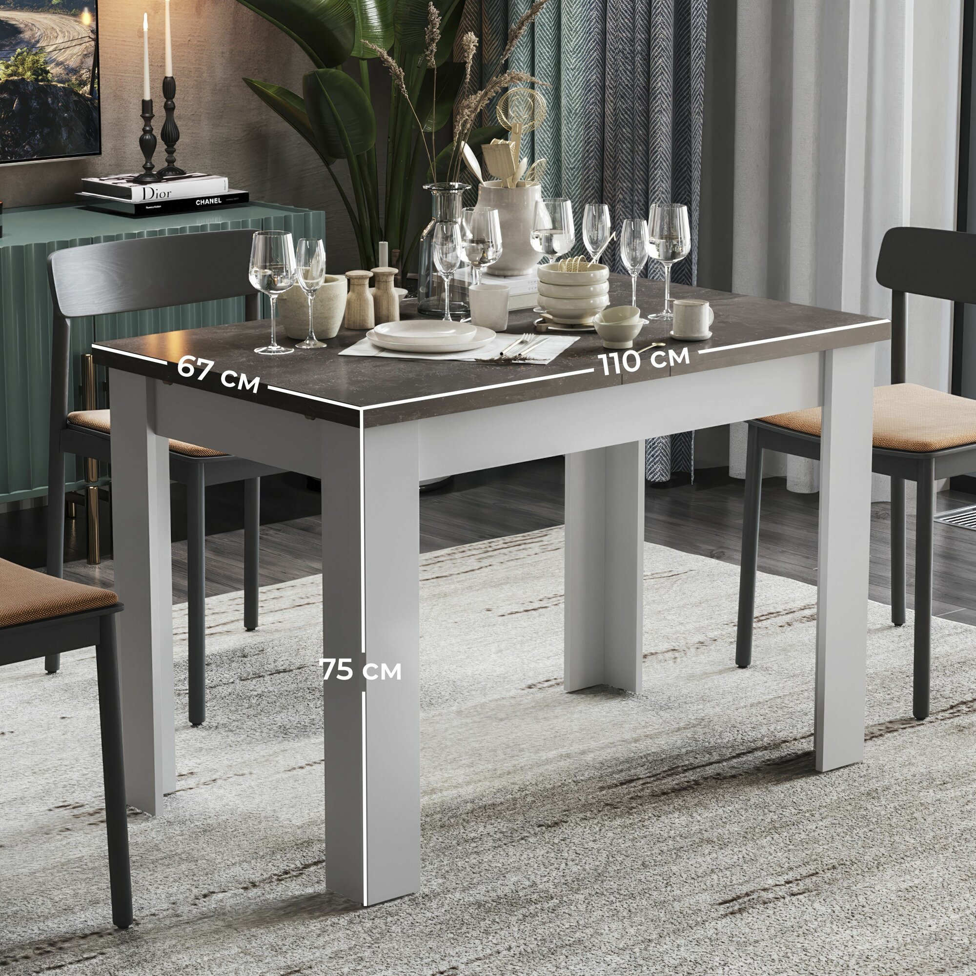 Стол кухонный раздвижной, стол обеденный белый серый (ВхДхГ) 75х110х67 см, Промо Тип 4