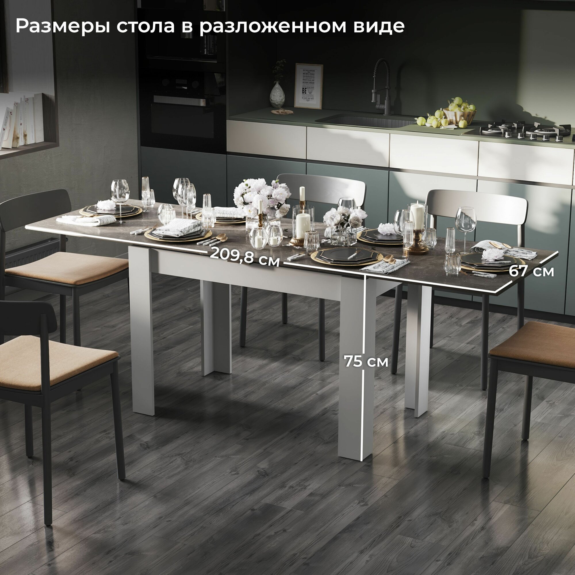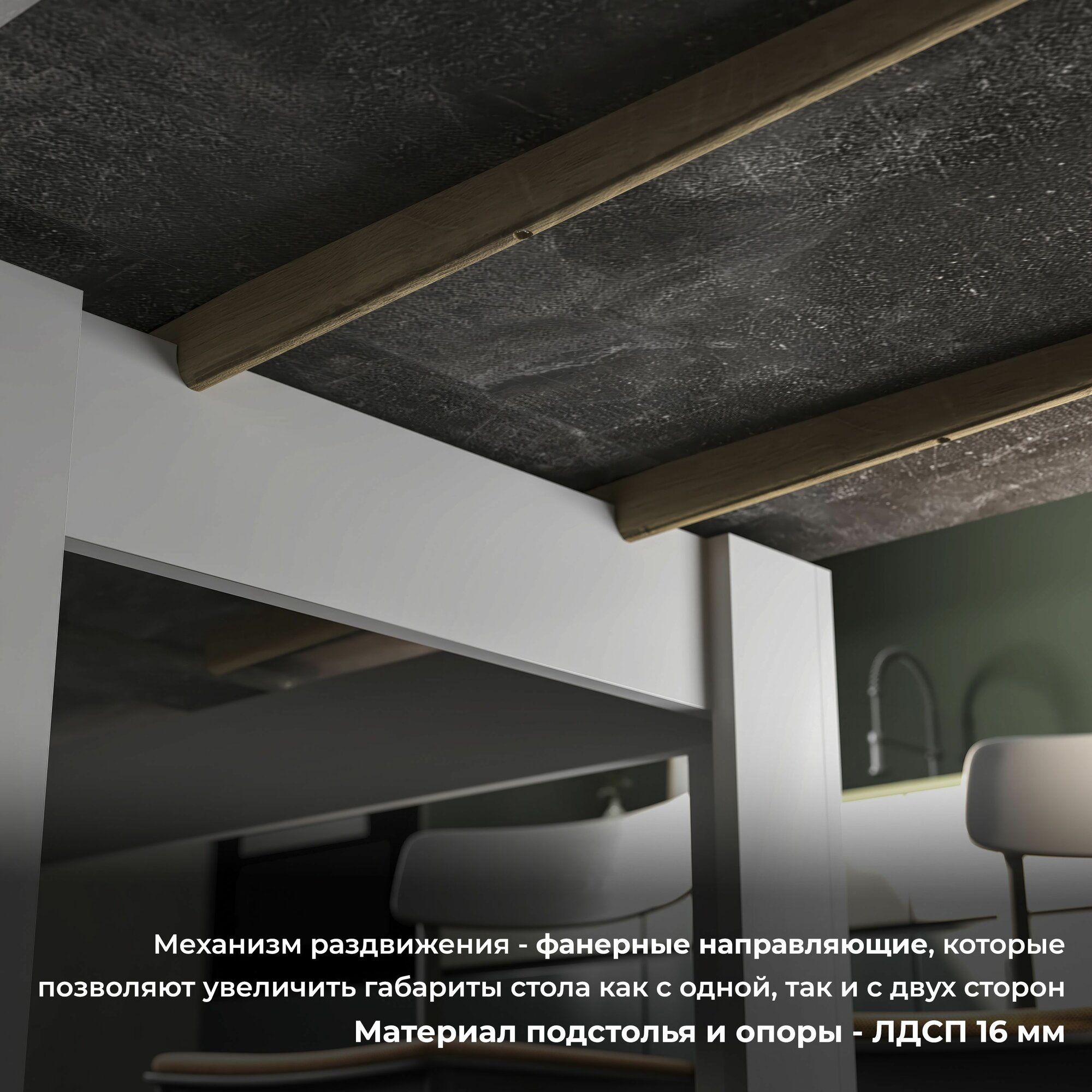 Стол кухонный , раздвижной , Промо тип 4 (Белый/Ателье темный) интересное:
