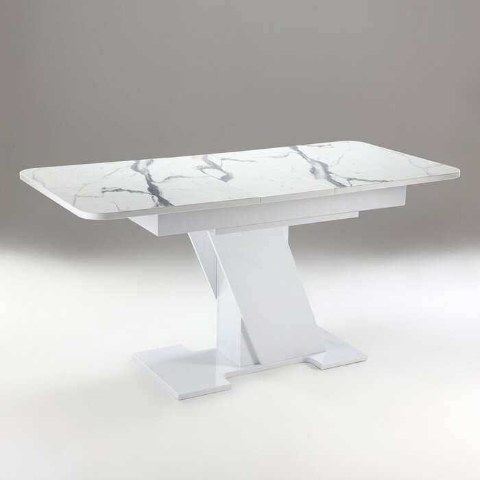 Стол кухонный раздвижной Олимп, Белый глянец/Белый мрамор пластик