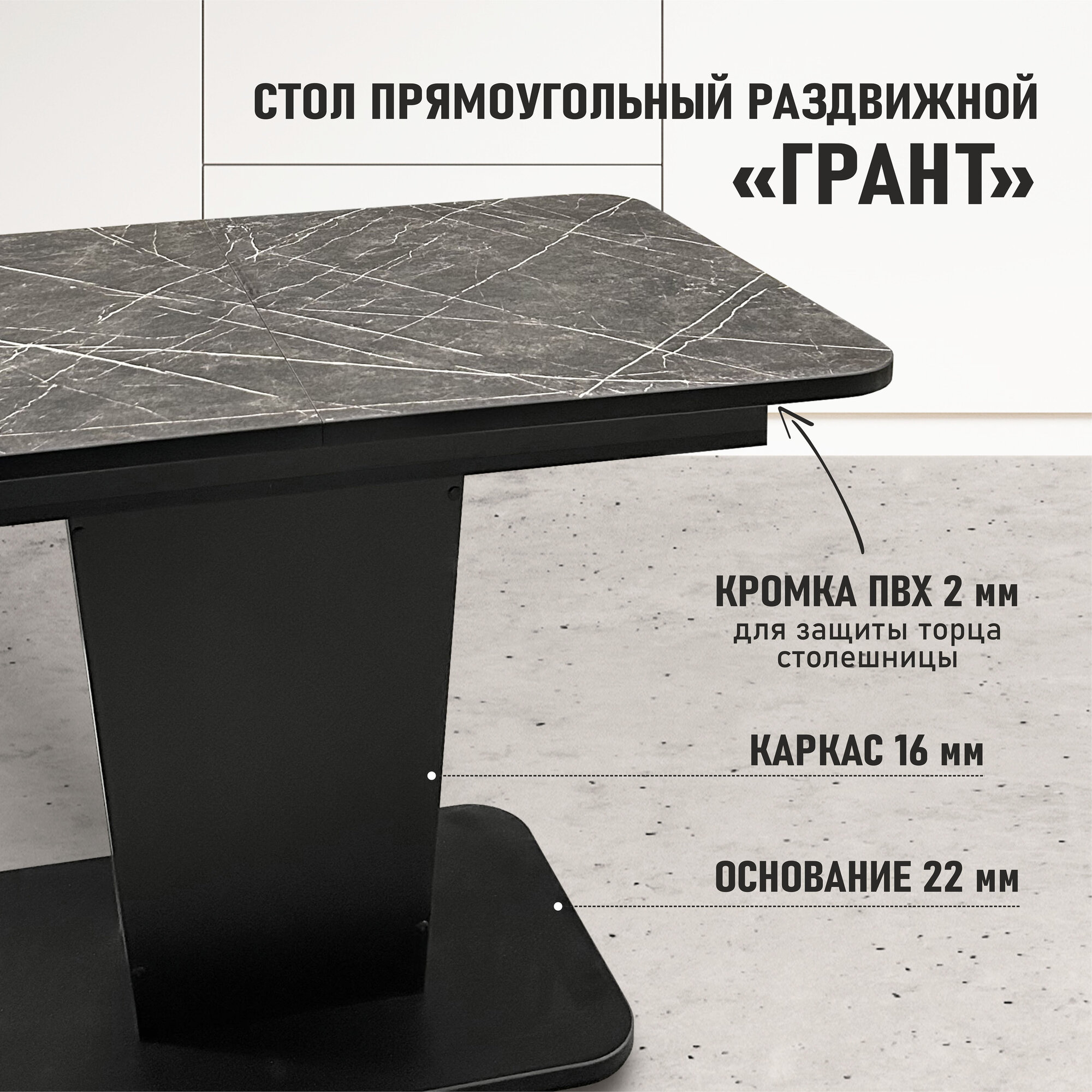 Купить Стол обеденный Фабрика кухонной мебели "Астола" "Грант", черный мрамор, ЛДСП, пластик