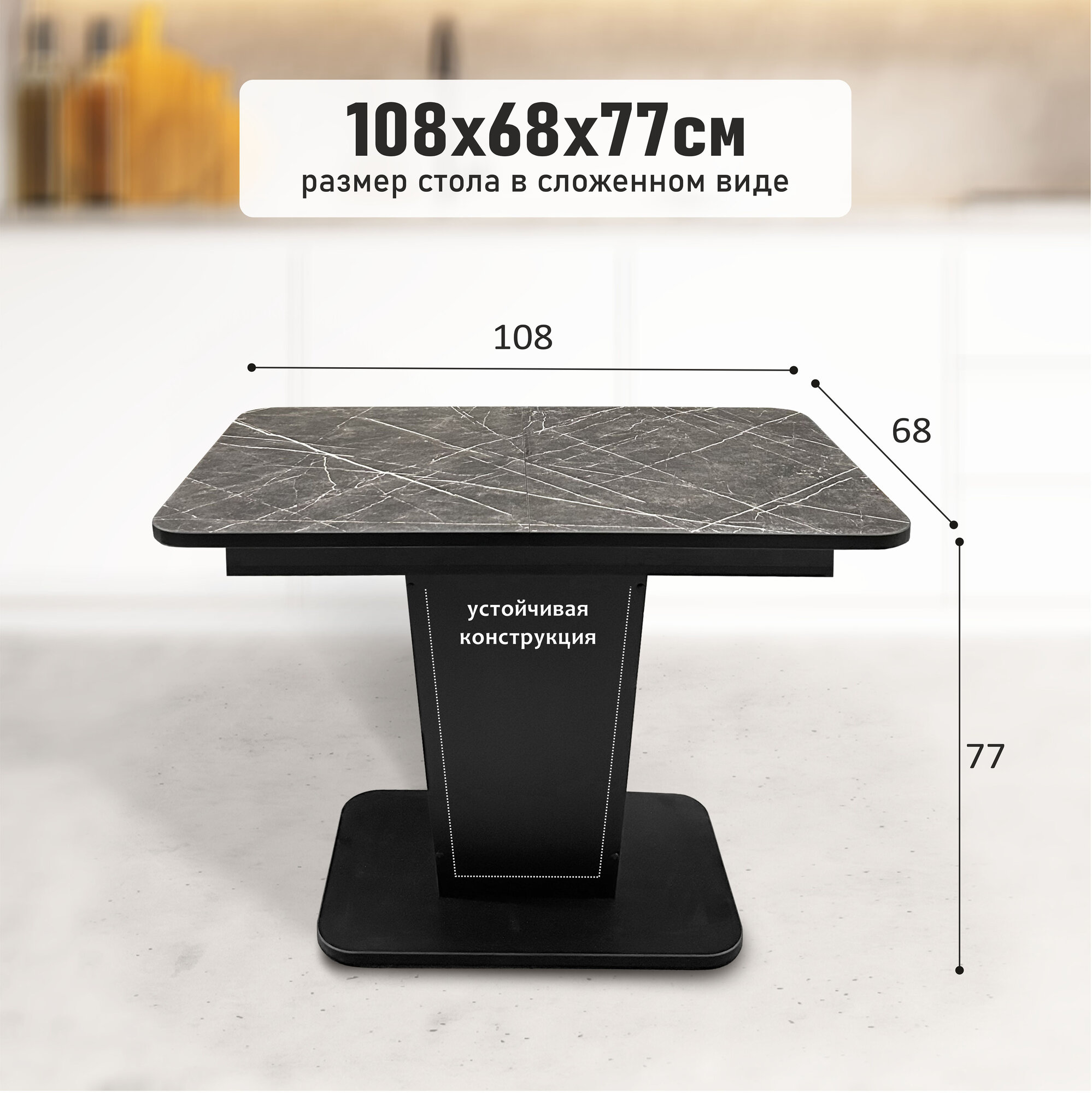 Стол кухонный Астола Грант, раздвижной, для кухни, белый мрамор, ЛДСП, 108 х 68 см