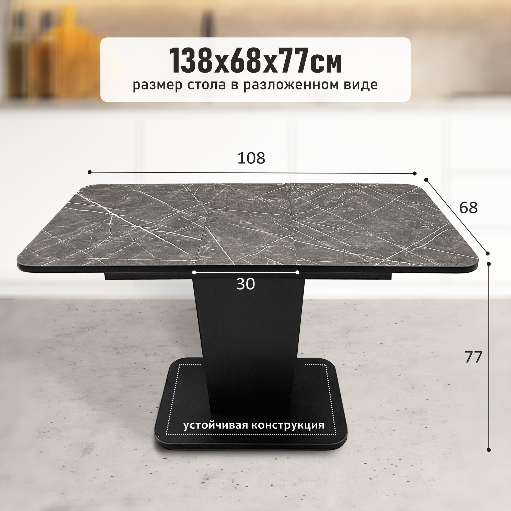 Стол кухонный обеденный раздвижной Грант, 108(138)х68см