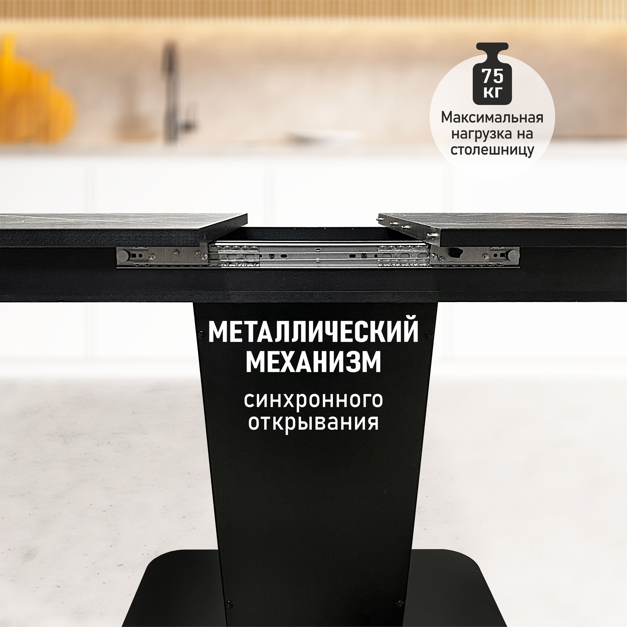 Стол кухонный раздвижной черный Грант, 108(138)х68см