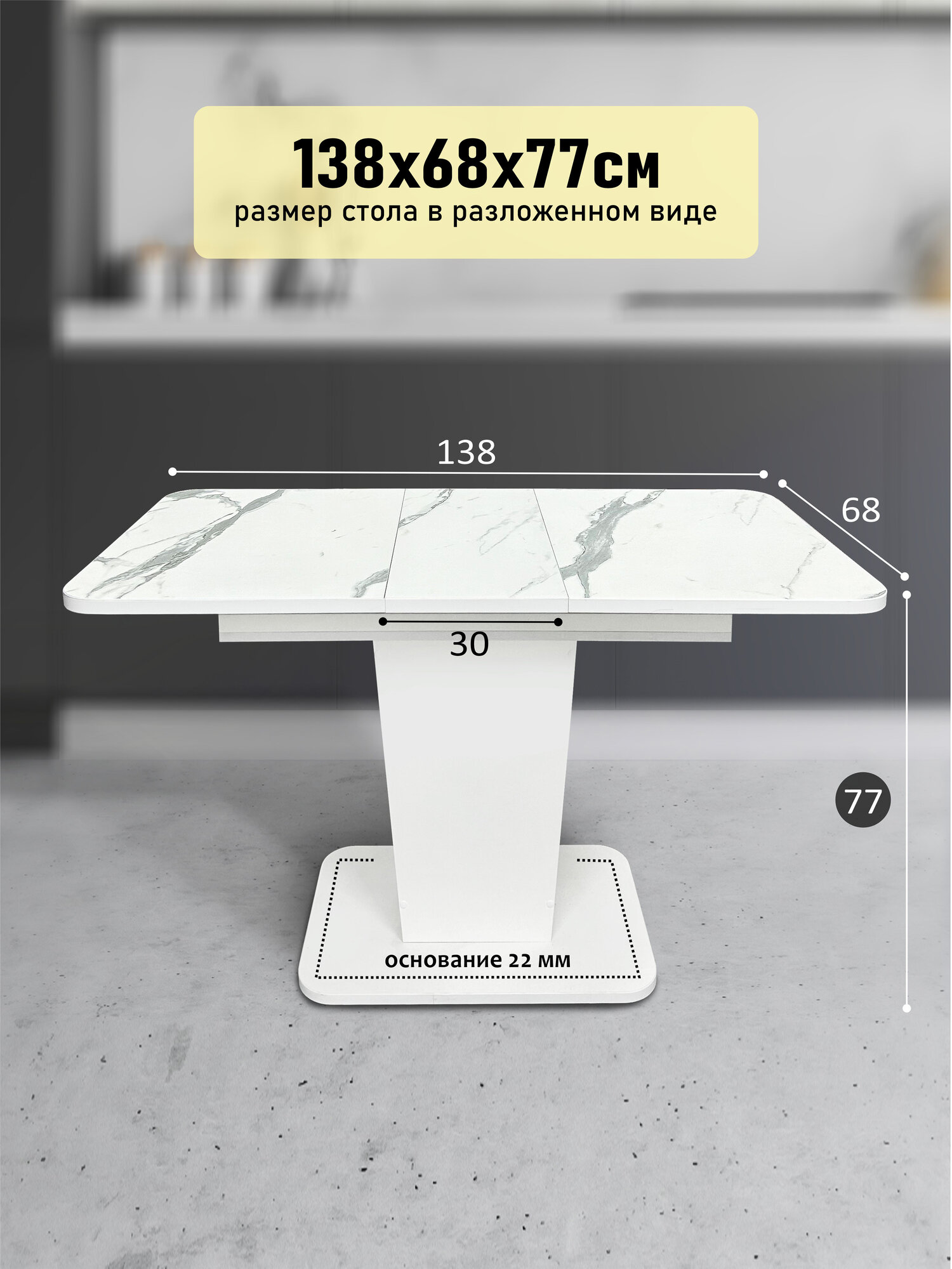 Стол кухонный раздвижной белый Грант, 108(138)х68см