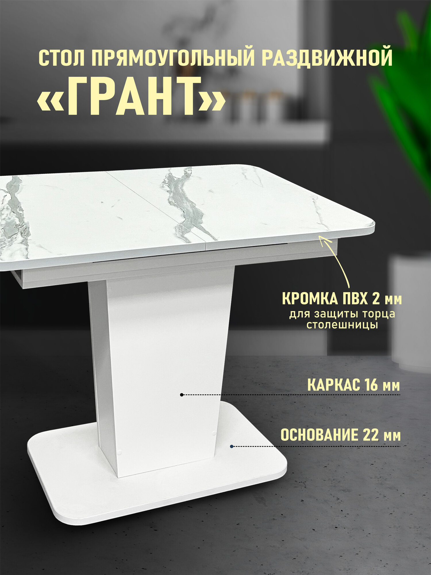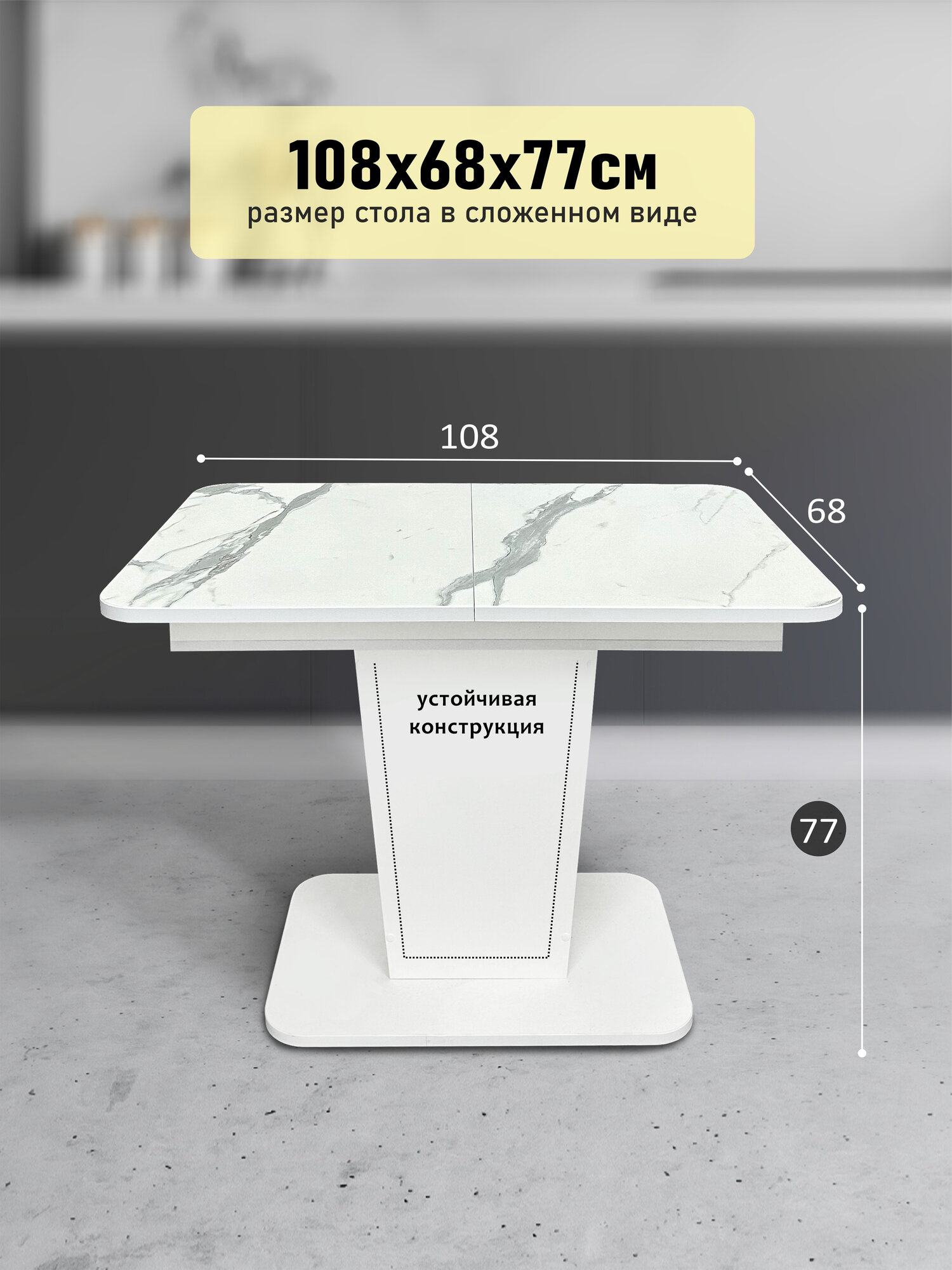 Стол кухонный Астола Грант, раздвижной, для кухни, белый мрамор, ЛДСП, 108 х 68 см