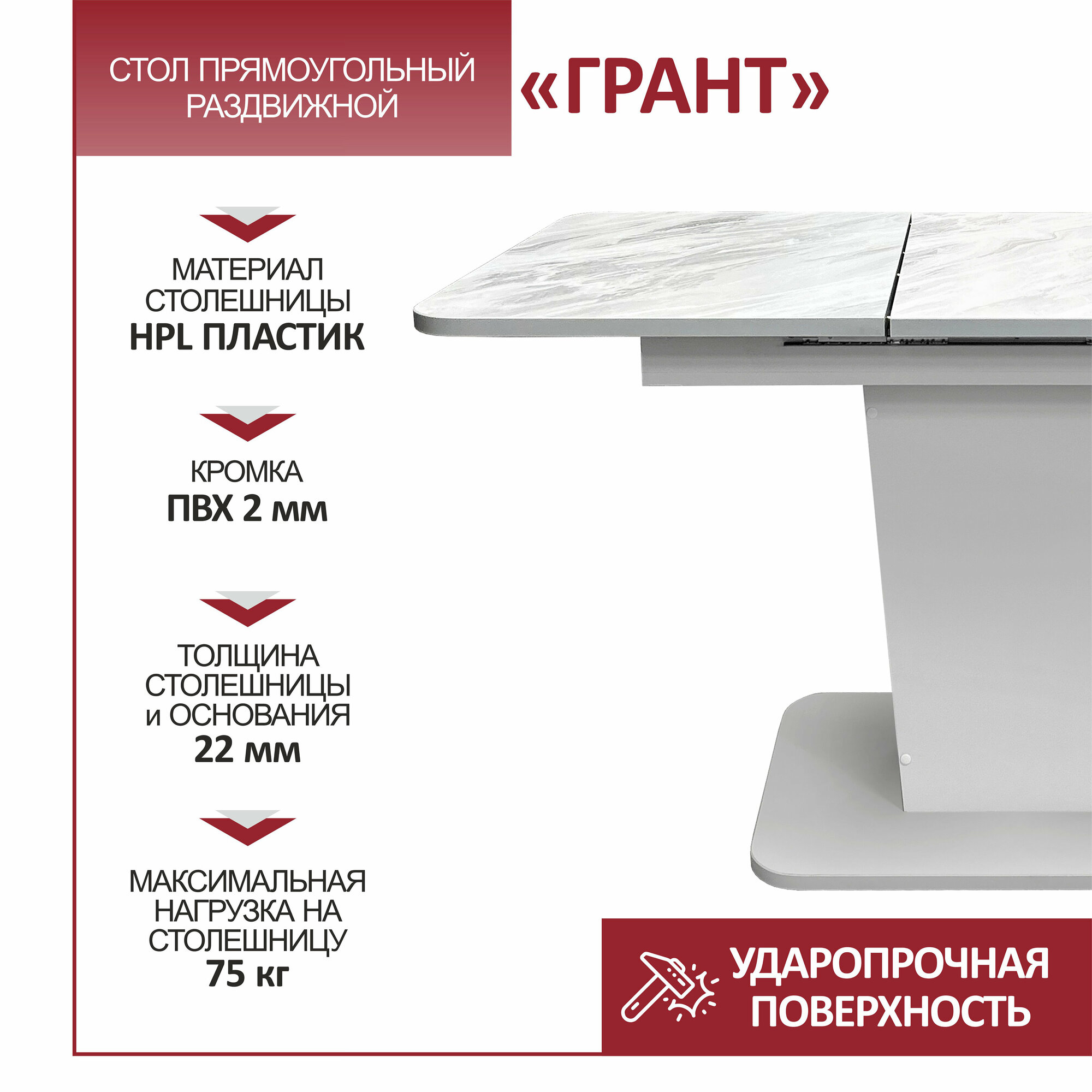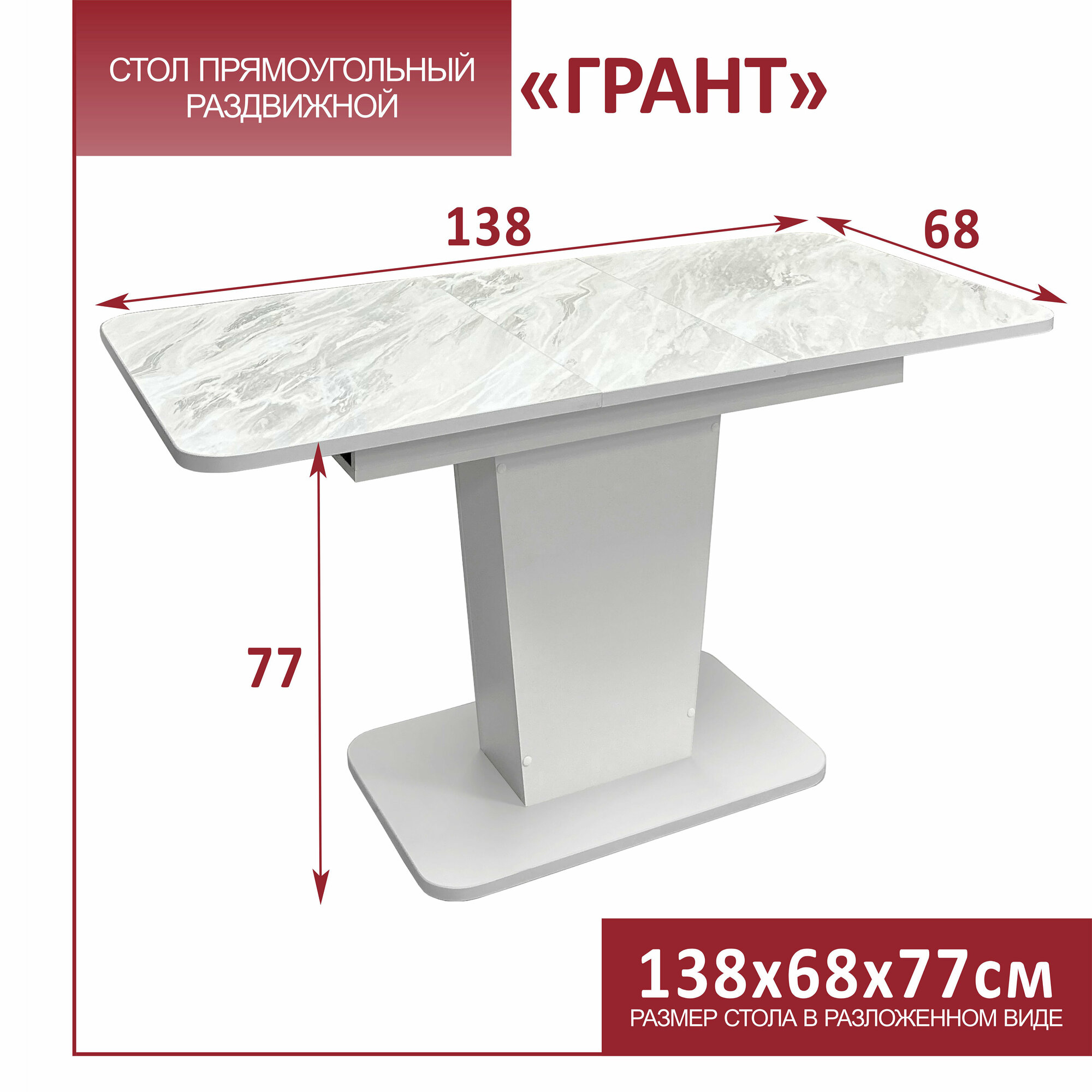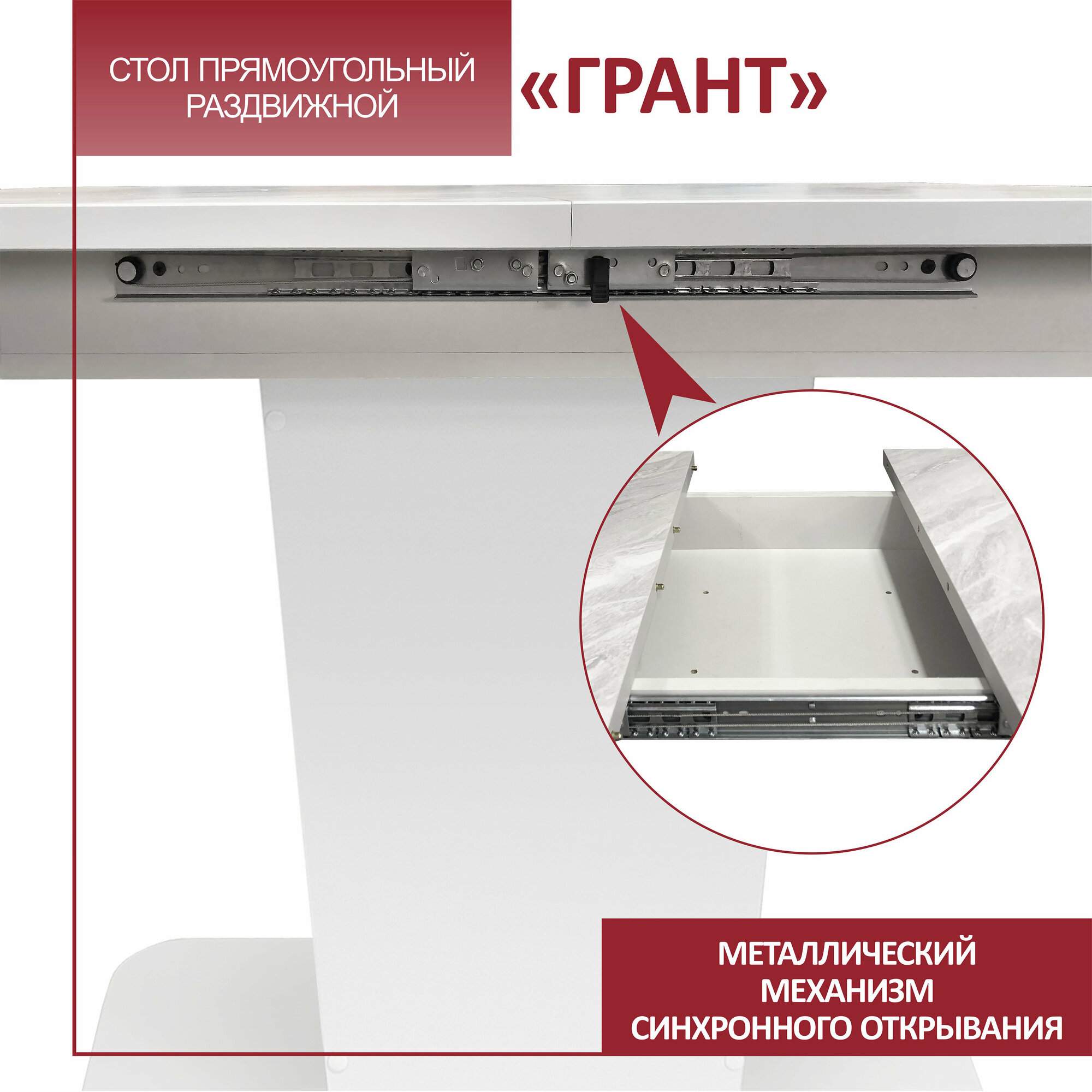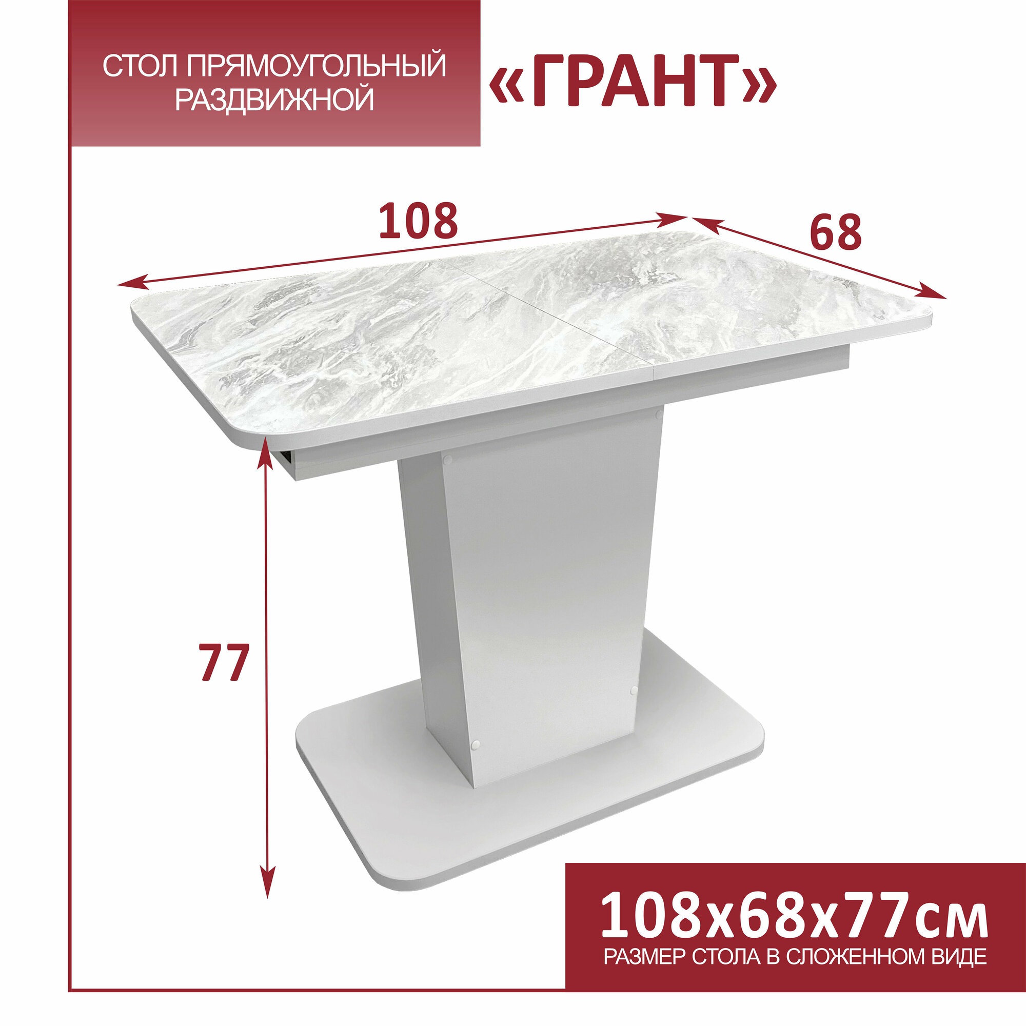 Стол обеденный Астола "Грант", раскладной, ЛДСП, белый мрамор, 108х68х77 см