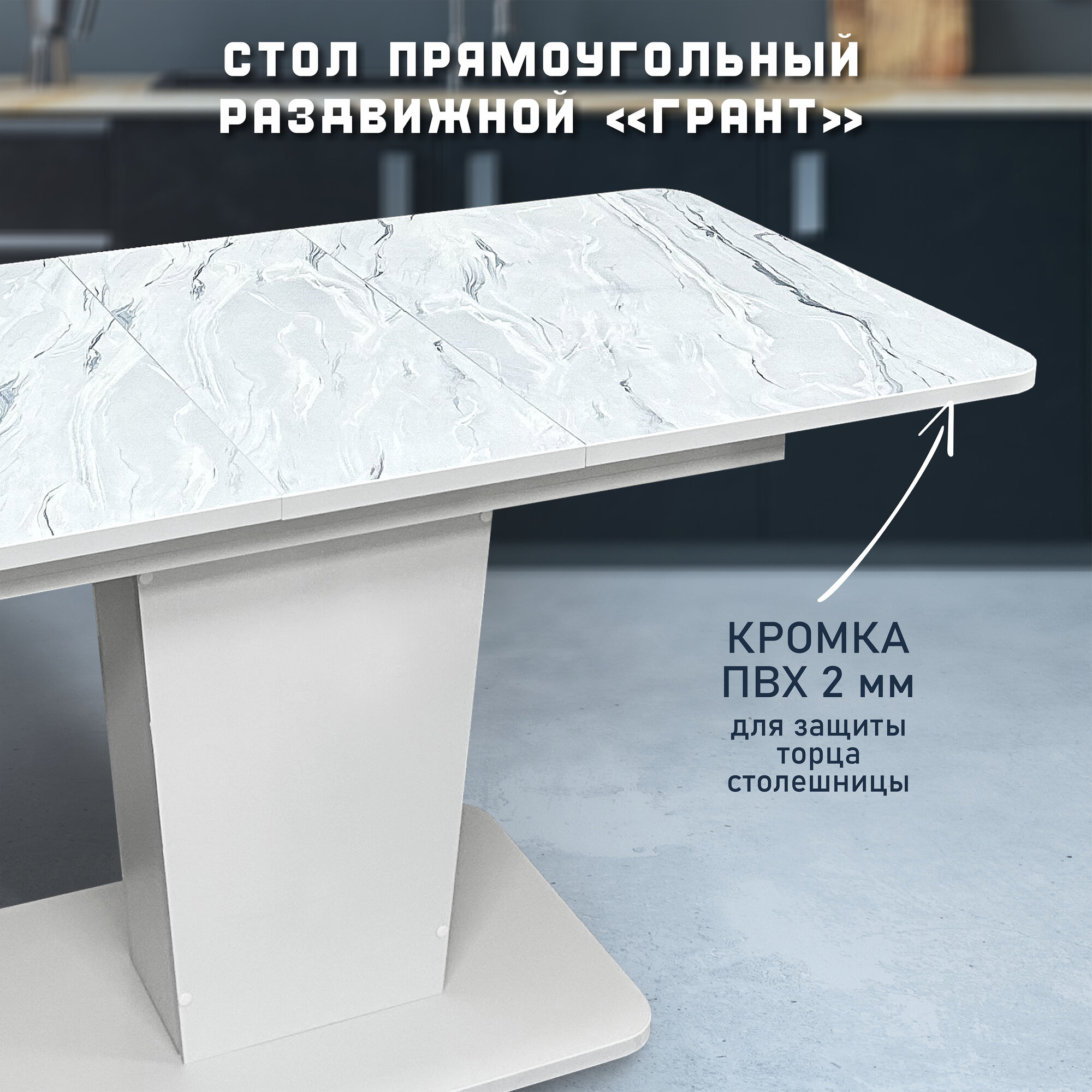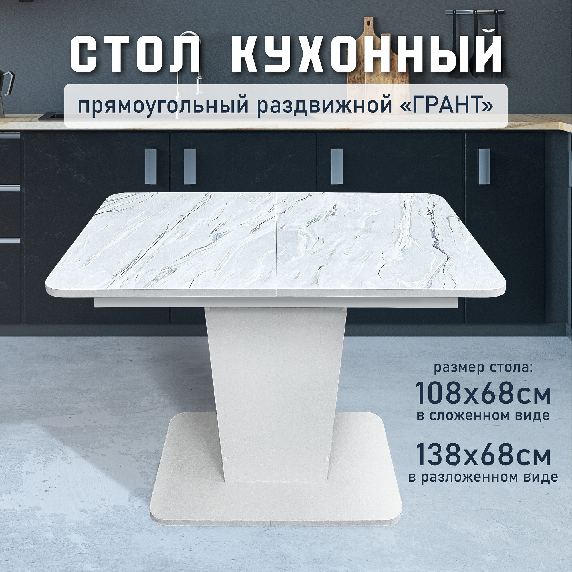 Стол кухонный Астола Грант, раздвижной, для кухни, белый мрамор, ЛДСП, 108 х 68 см