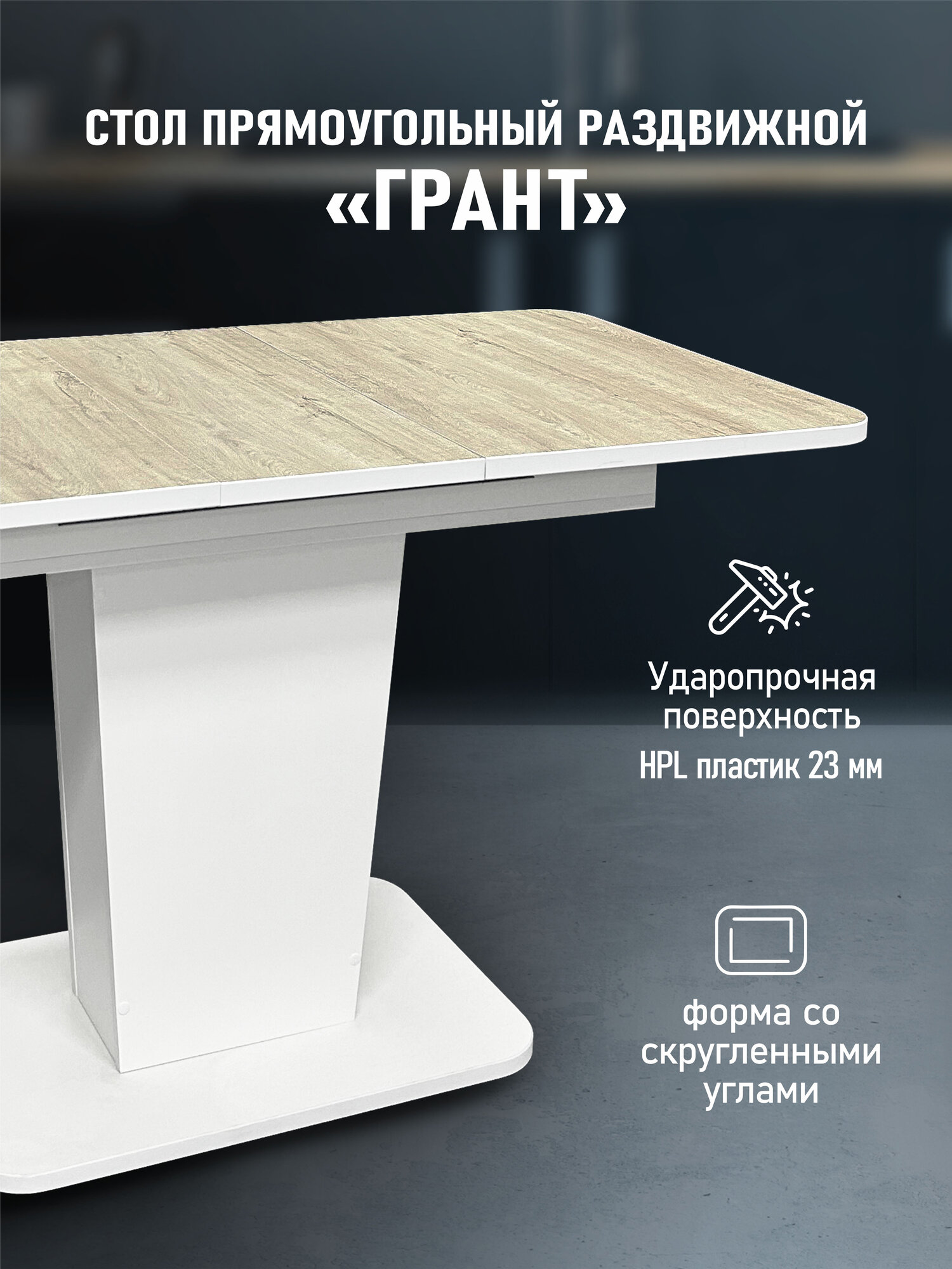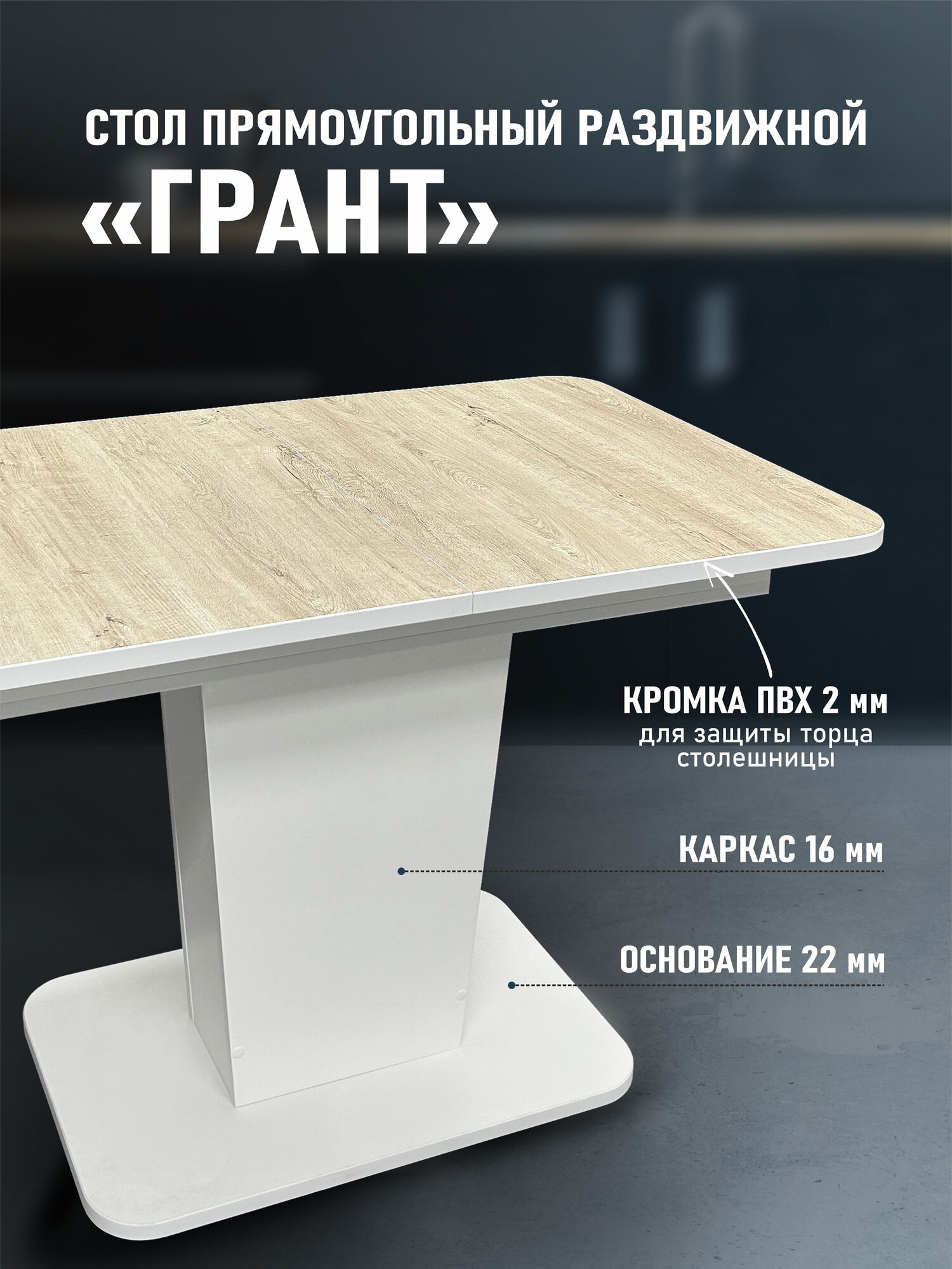 Стол кухонный обеденный раздвижной Грант, 108(138)х68см