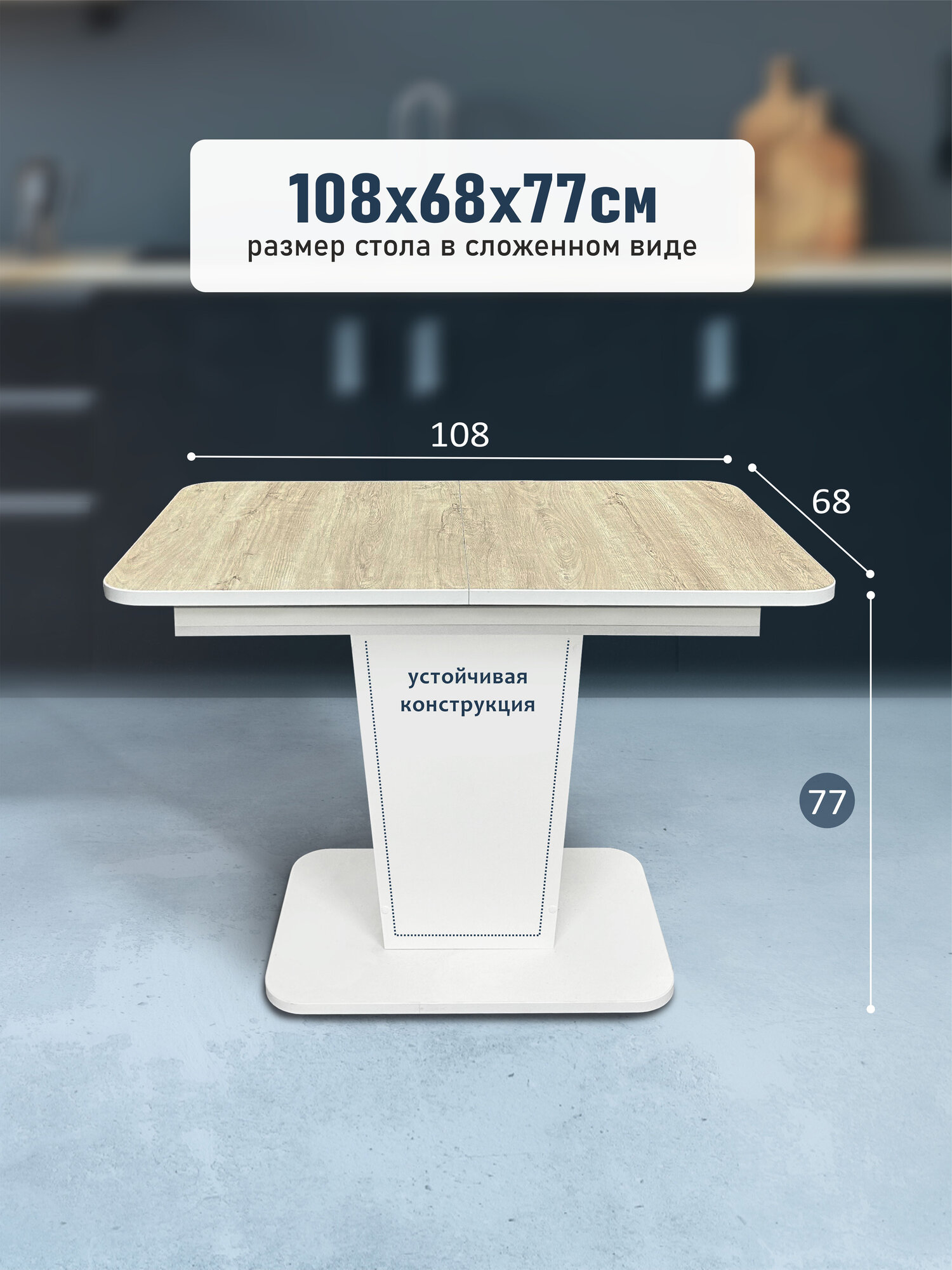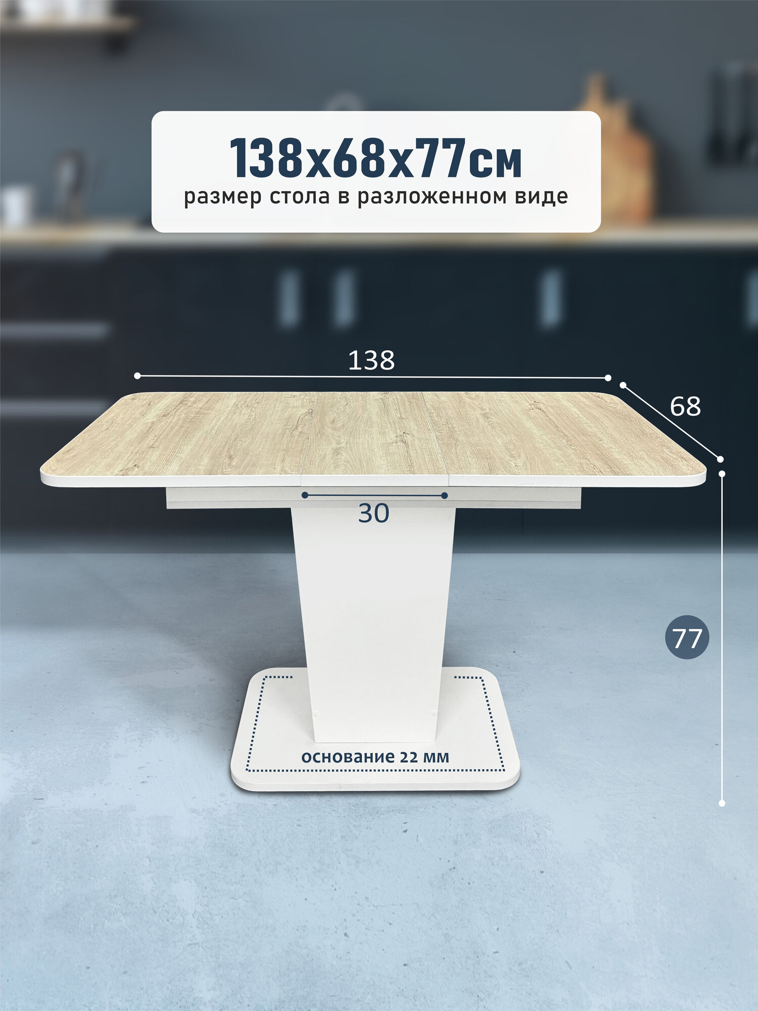 Стол кухонный раздвижной белый Грант, 108(138)х68см