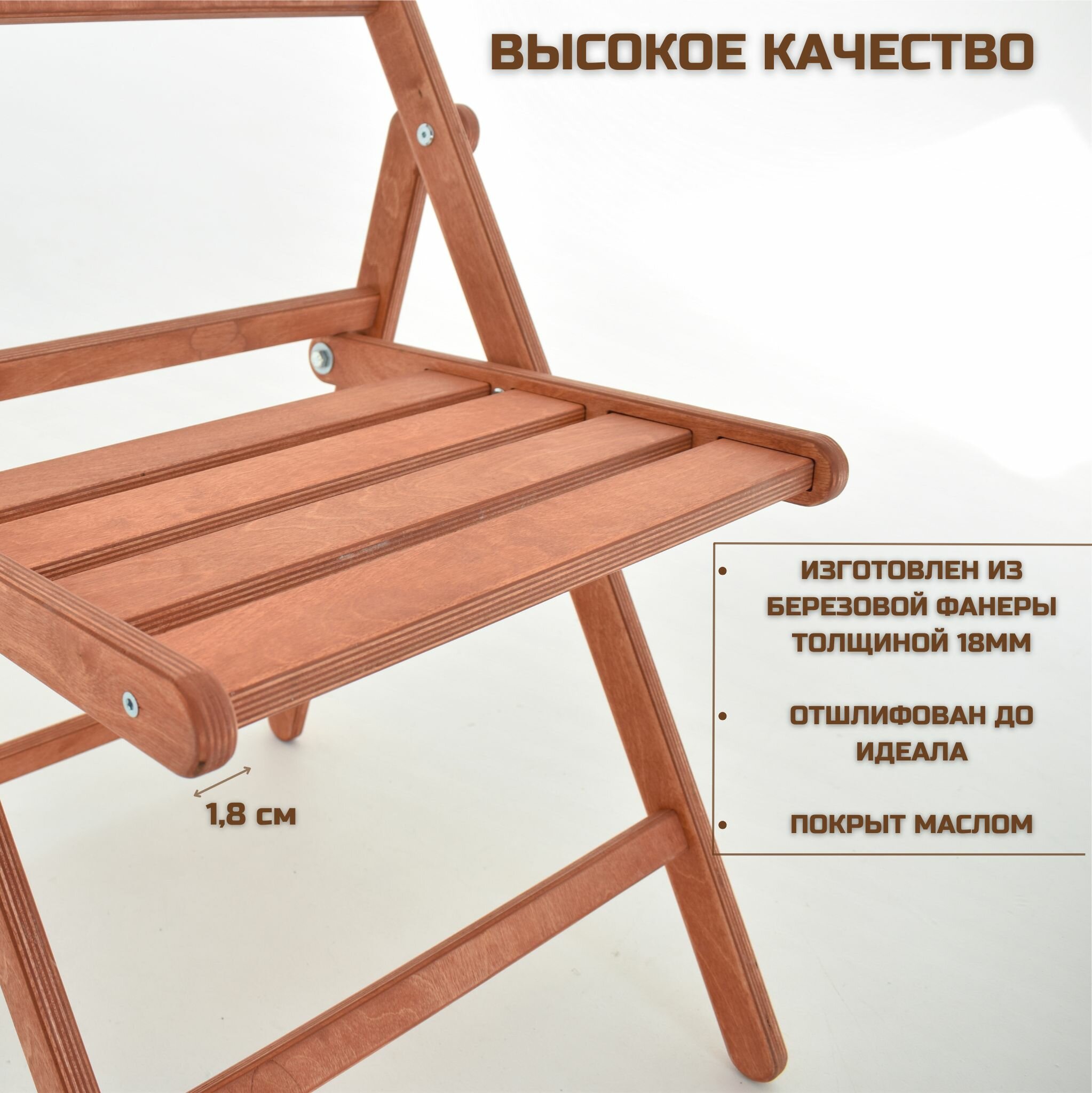 Стул складной деревянный Геркулес для дома и дачи, шлифованный