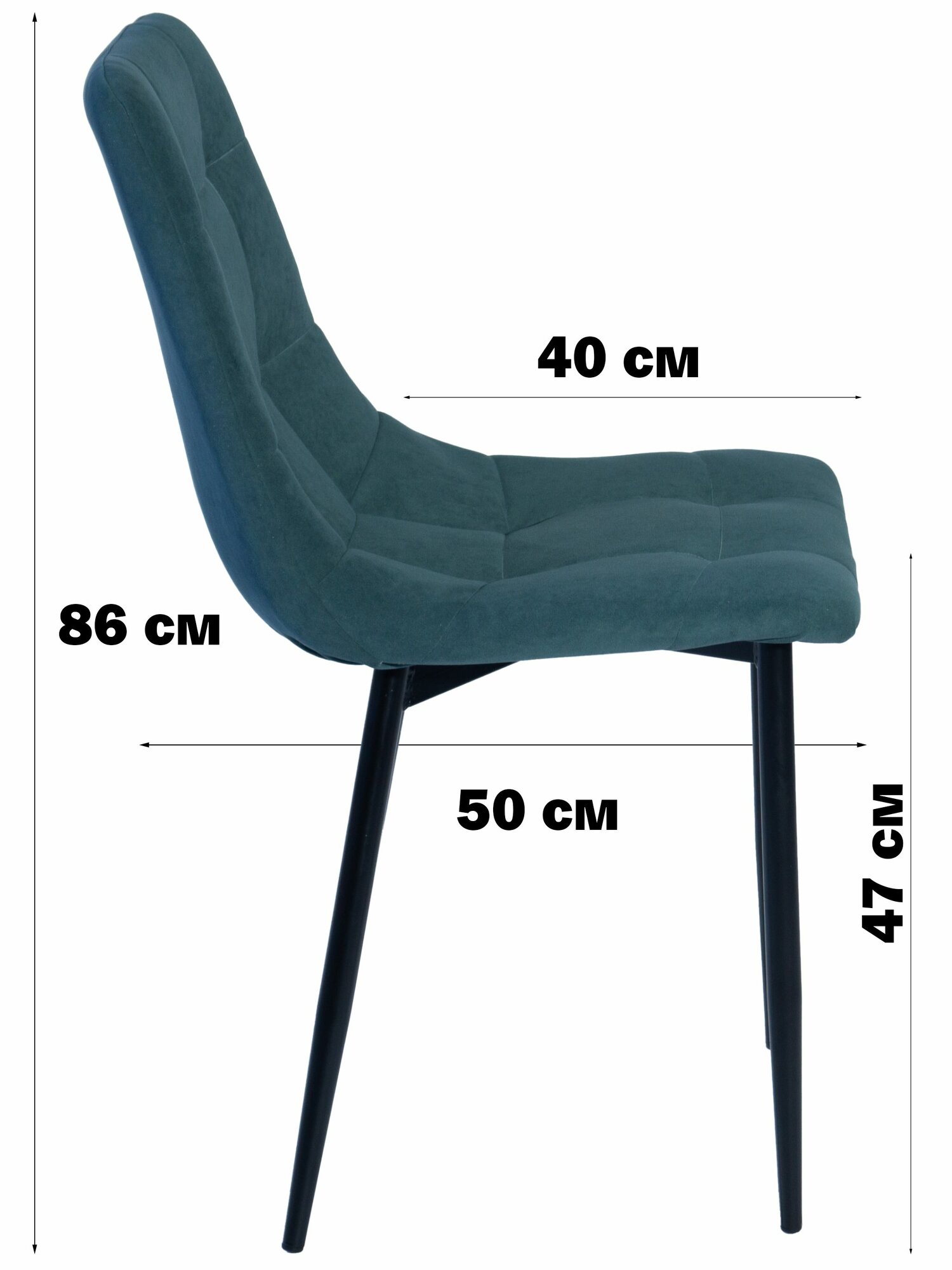 Стул мягкий для кухни, комплект из 4 кухонных стульев чили, велюр, синие, черные ножки
